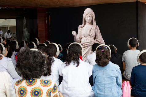 On this gigantic catamaran, the space has been entirely designed to accommodate the museum. This includes an immersive room, designed in partnership with the Louvre Museum, featuring female figures in Mediterranean civilizations.