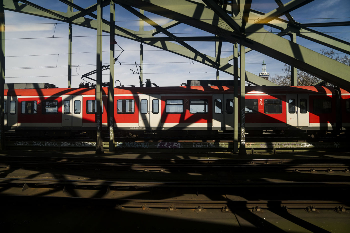 Illustration of railway tracks, trains and stations of SNCF and RATP.