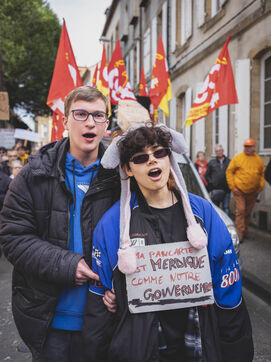 La jeunesse (lycéens, étudiants) est présente dans le cortège pour dénoncer, au delà de la réforme de la retraite, "un déni de démocratie" et un "retour en monarchie".
