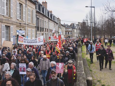 France, Moulins, 2023-03-28. Dixième journée de mobilisation contre la réforme des retraites à Moulins (Allier), au centre de la France.
