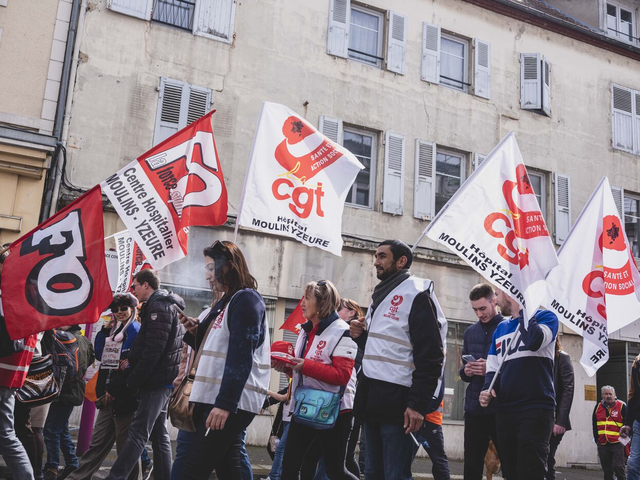 France, Moulins, 2023-03-28. Tenth day of mobilization against the pension reform in Moulins (Allier), in central France.