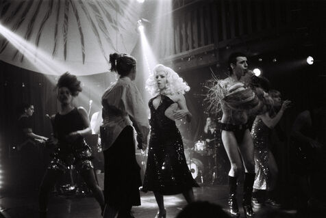 burlesque stripteases, clowns, dragqueens and kings, rappers, aerial artists and circus performers, fag and jazz singers, lost poets, bodies, songs, the unexpected...