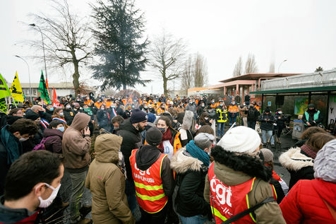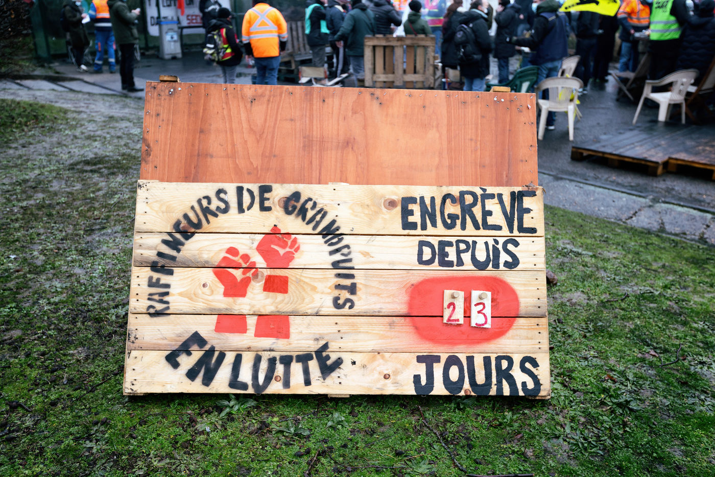 Gathering of refiners on strike against the closure of the Grandpuits site.