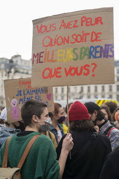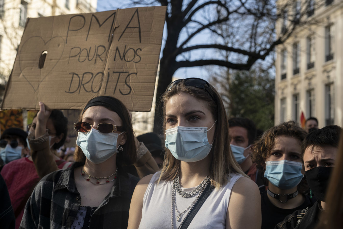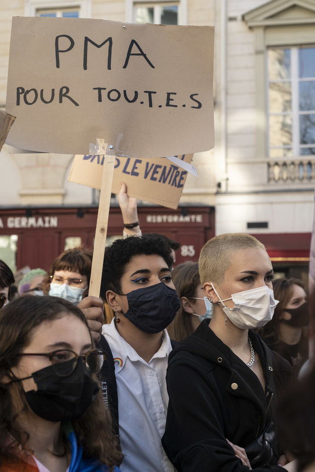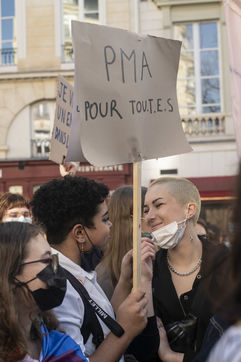 Rassemblement pro-PMA, suite au vote du Sénat supprimant l ouverture de la PMA aux couples de femmes et aux femmes seules. Paris, le 21 février 2021.