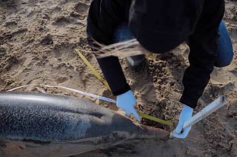 Partout sur les côtes françaises, les correspondants du Réseau National des Echouages, coordonné par l'observatoire et institut de recherche Pelagis, se rendent sur les lieux des échouages signalés par des promeneurs. Ils identifient l'espèce de l'animal échoué, prennent ses mesures et des photographies pour documenter d'éventuelles traces externes de capture (perforations, amputations...), et prélèvent parfois ses organes pour les envoyer à Pelagis pour analyse, ce qui permettra de mieux cerner la cause de sa mort et suivre l'état de santé des populations.