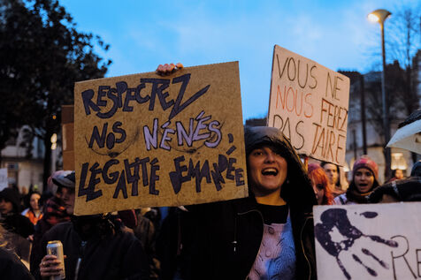 March on patriarchy, 8 March 2023 in Nantes, on the occasion of the International Women's Rights Day and the feminist strike, organised by CLAC, FemRev, Nosig, Nous Toutes 44, Paloma, Planning Familial 44, Pour une MEUF and Reboo-T.