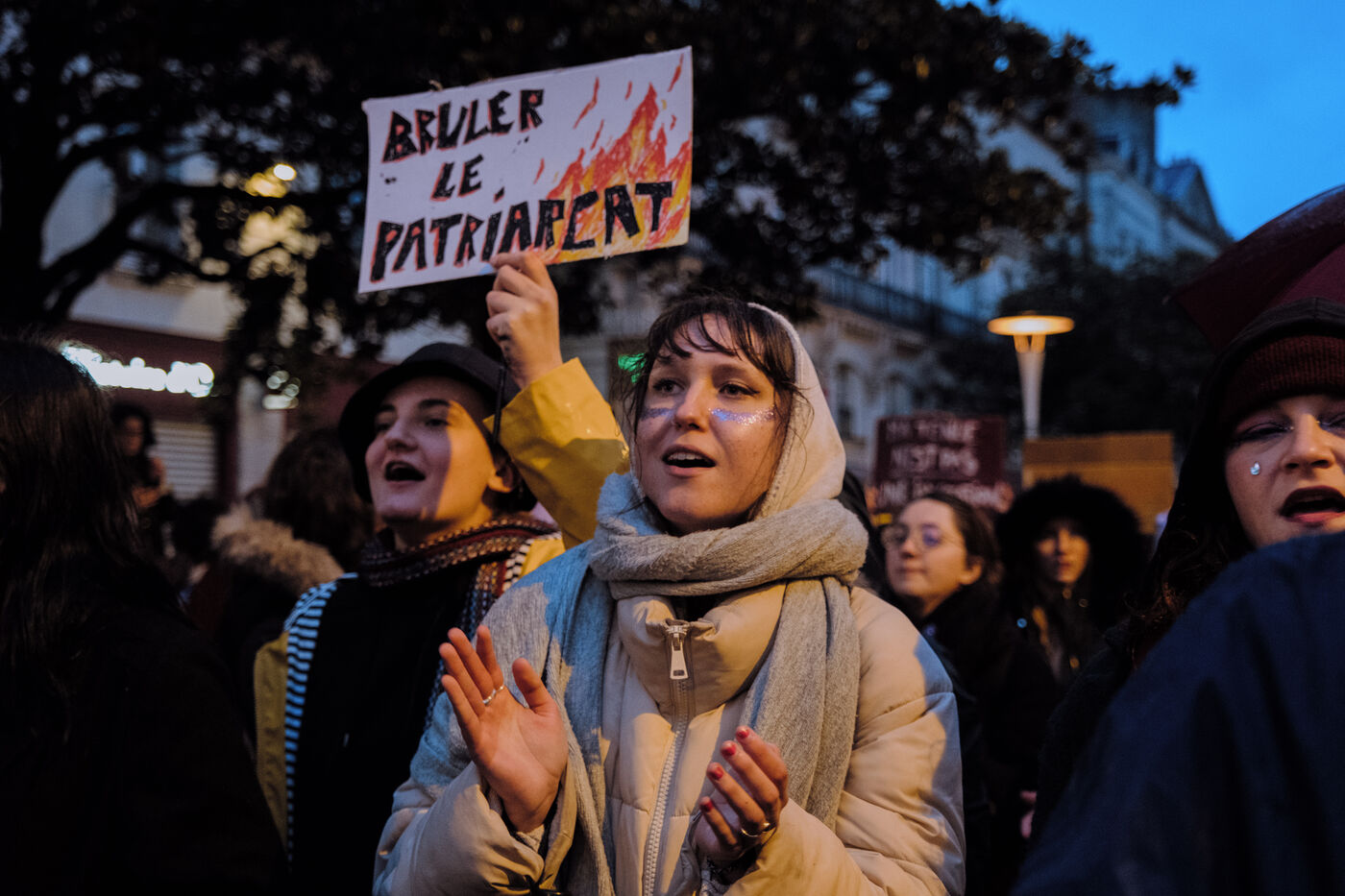 Marche sur le patriarcat, le 8 mars 2023 à Nantes, à l'occasion de la journée internationale des droits des femmes et de la grève féministe, organisée par la CLAC, FemRev, Nosig, Nous Toutes 44, Paloma, le Planning Familial 44, Pour une MEUF et Reboo-T.