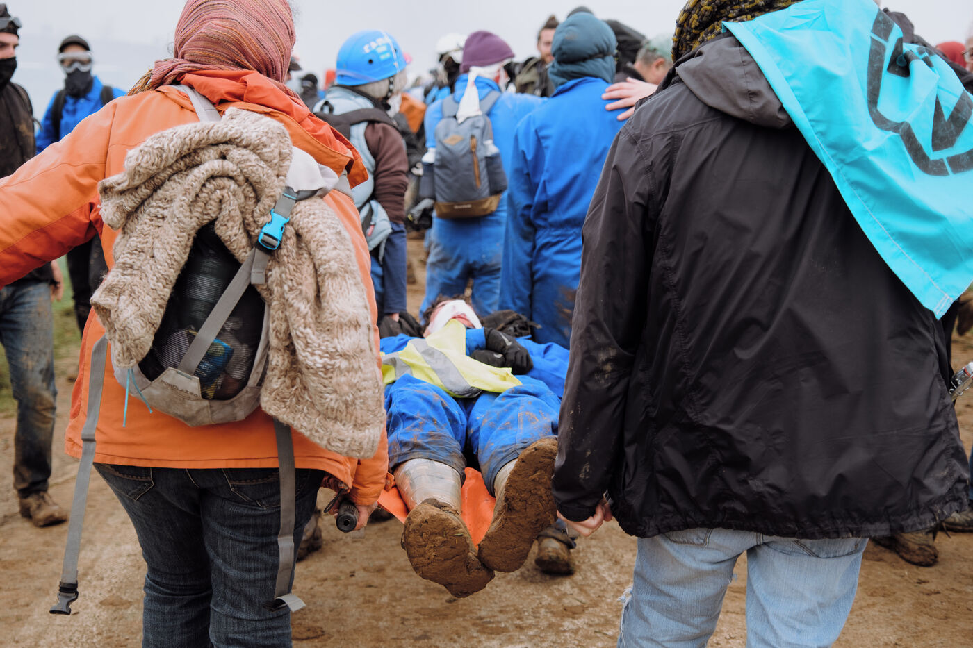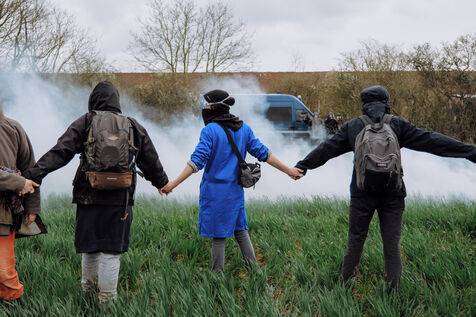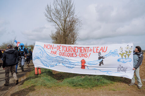 Mobilisation massive interdite contre les mégabassines à Sainte-Soline, le 25 mars 2023, en réponse à l'appel des Soulèvements de la Terre, de la Confédération paysanne et de Bassines non merci, pour protéger l'eau contre les méga-bassines, symbole d'une agriculture intensive qui assèche les sols et détruit la biodiversité. Plus de 20 000 personnes, d'après les organisateurs, ont marché du campement établi à Vanzay jusqu'à la bassine en construction de Sainte-Soline où était déployé un lourd dispositif des forces de l'ordre. De très violents affrontements ont eu lieu, qui ont fait de nombreux blessés, dont un manifestant dans le coma dont l'évacuation par le SAMU a été retardée par les forces de l'ordre.