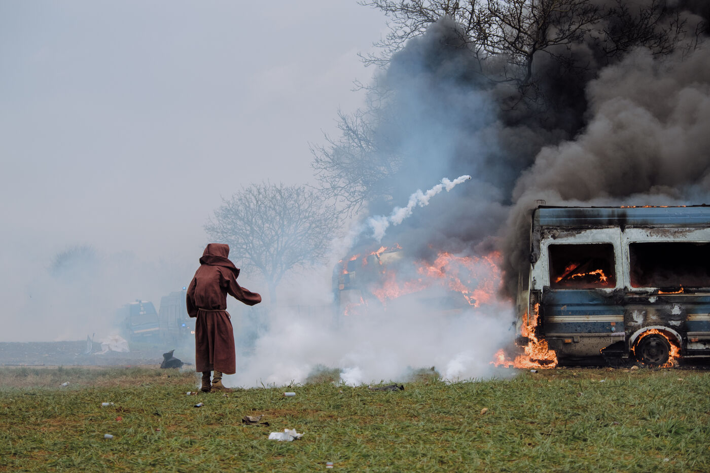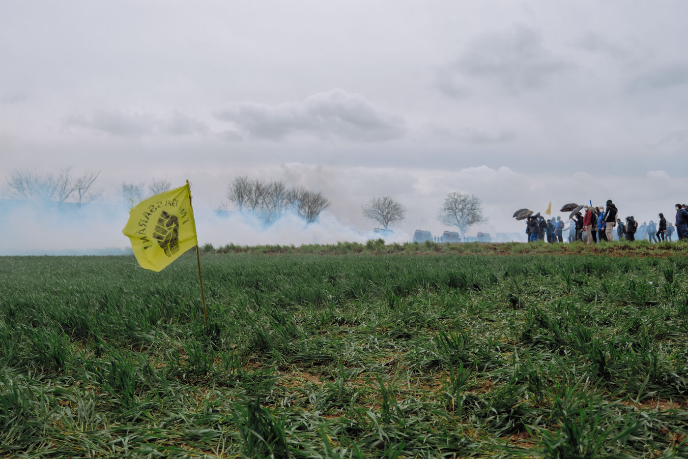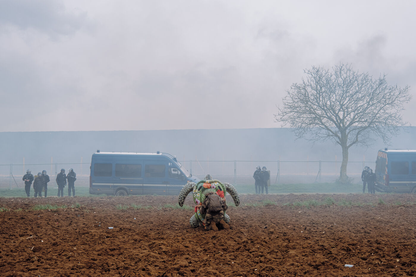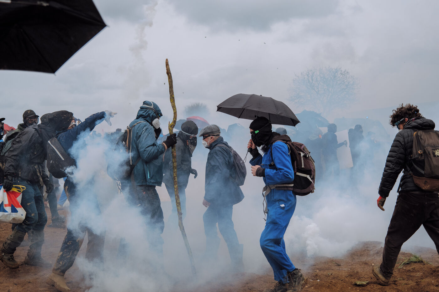 Massive mobilization against mega-basins in Sainte-Soline, on March 25th, 2023, in response to the call of the Soulèvements de la Terre, Confédération paysanne and Bassines non merci, to protect water against mega-basins, symbol of intensive agriculture that dries up the soil and destroys biodiversity. More than 20,000 people, according to the organizers, marched from the camp established in Vanzay to the basin under construction in Sainte-Soline where a heavy police force was deployed. Very violent clashes took place, with many people suffering injuries, including a demonstrator in a coma whose evacuation by the SAMU was delayed by the police.