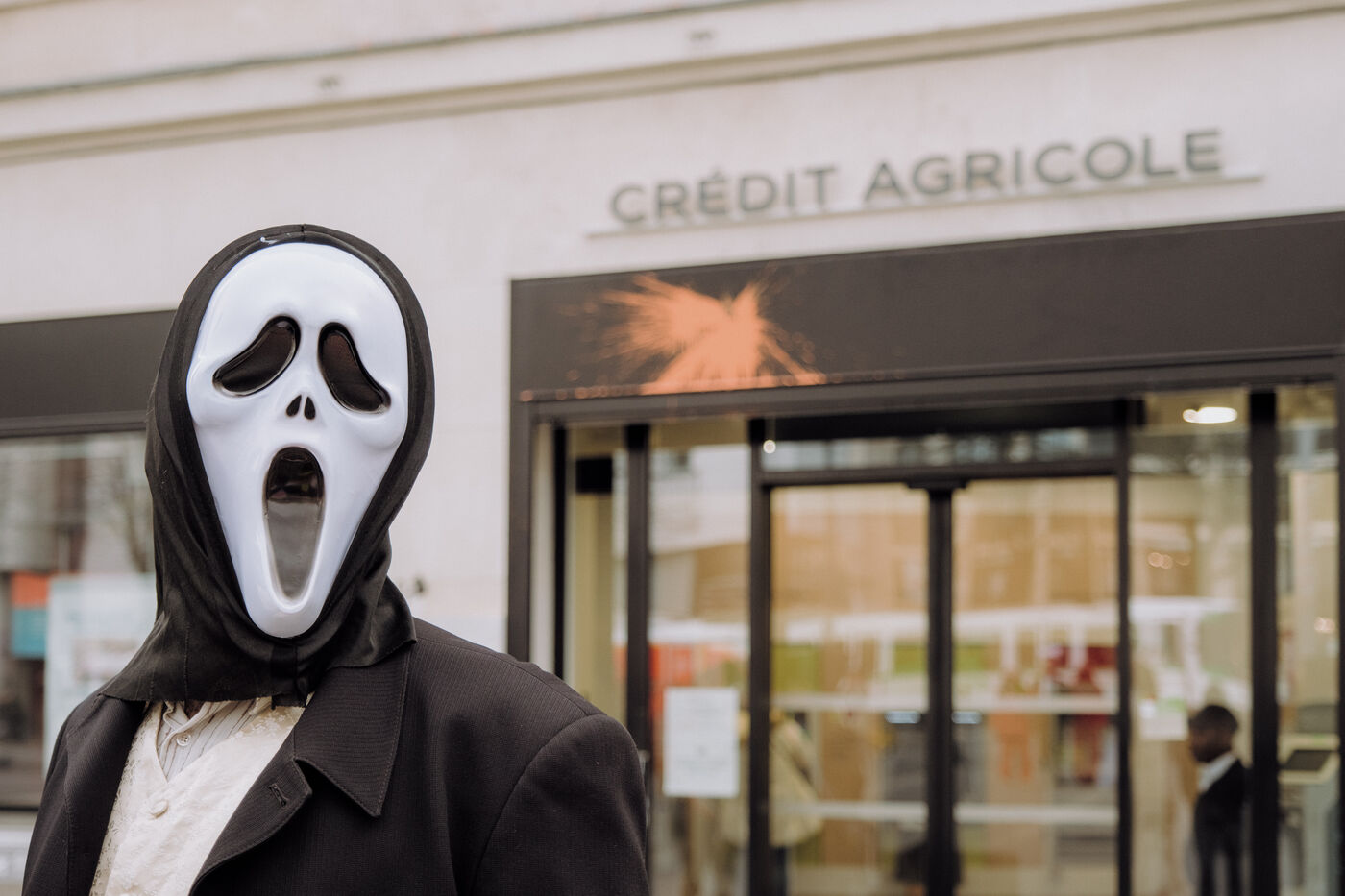 Devant une assistance composée d'industriels et de financiers portant des masques de Scream, un ministre de la catastrophe climatique a officié en dénonçant la contradiction entre l'affichage d'une politique de financement responsable par le Crédit Agricole et ses liens avec Total. Le mariage s'est achevé par la naissance inopinée d'un bébé EACOP, projet d?oléoduc en Ouganda et en Tanzanie, qui aggravera le changement climatique et menace les terres de dizaines de milliers d'habitants, ainsi que des réserves naturelles.