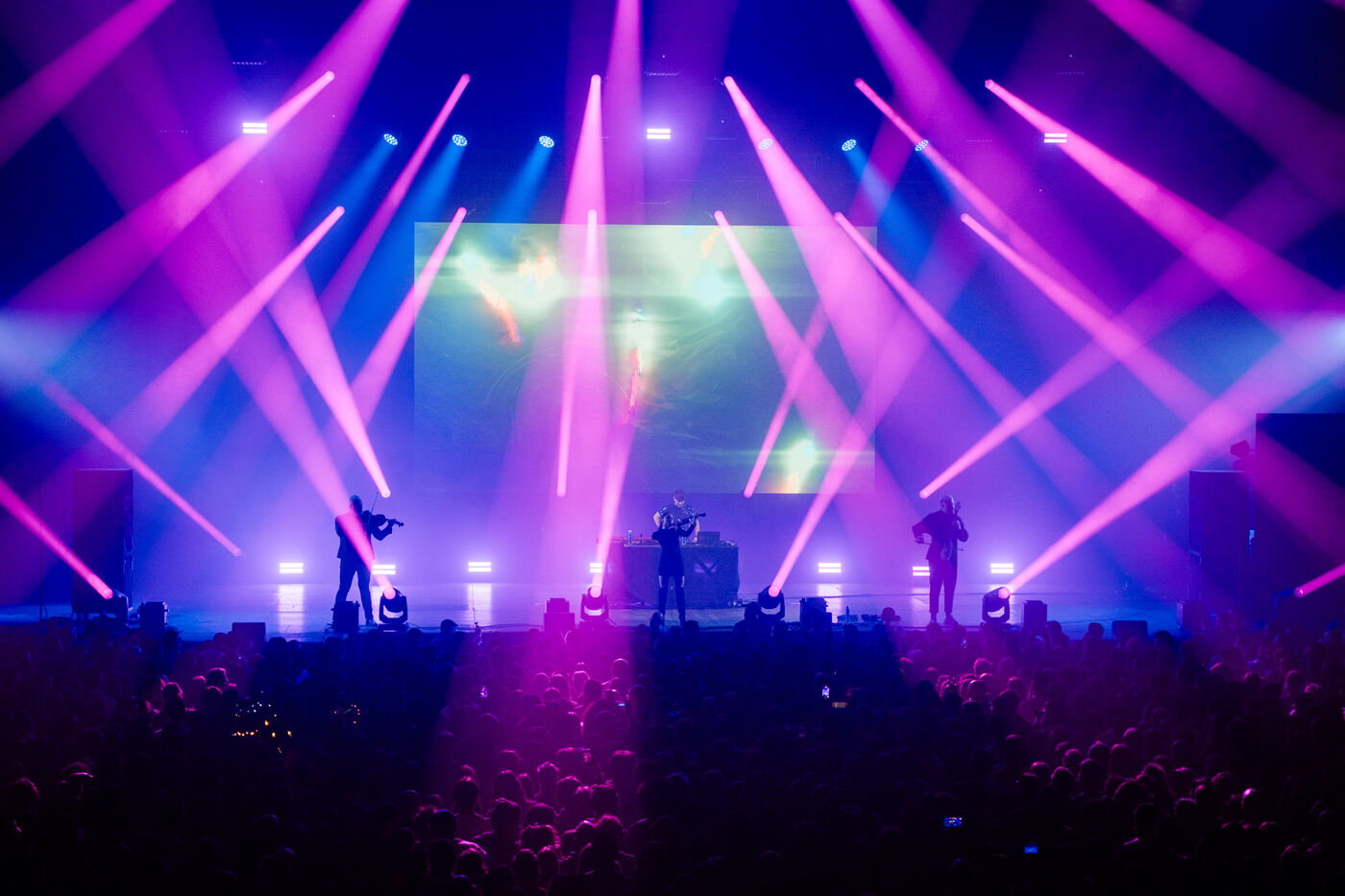 Worakls concert at the Zénith in Nantes, on January 6, 2024, during the second edition of Ocean Fest, a music festival dedicated to the protection of the oceans, co-founded by Hugo Clément and Worakls. Worakls composes and plays electro music with Zoltan Szanto on viola, Esther Abrami on violin and Antonin Winter on electric cello.
