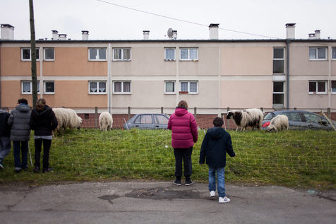 Jardins partagés et fermes urbaines essaiment dans les grandes métropoles du monde entier. En banlieue parisienne, au milieu des tours de béton, l'association Clinamen a choisi d'utiliser tous les espaces verts. Entre un centre commercial et une école, les moutons de Clinamen rentrent dans l'ordinaire des habitants. Chaque jour, les enfants viennent récupérer les oeufs frais des poules ou caresser les animaux.