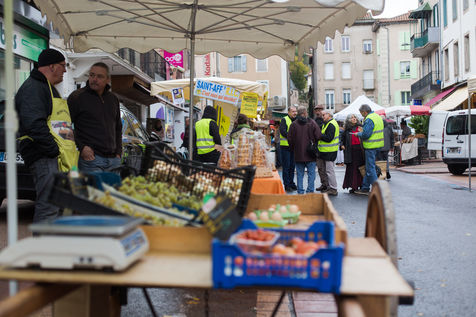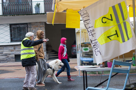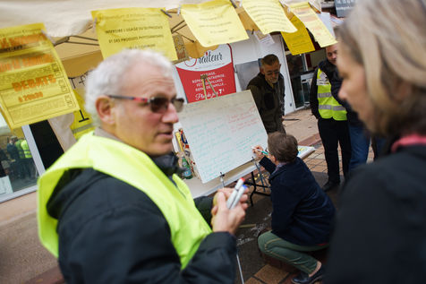 Un groupe de Gilets Jaunes sur le marché hebdomadaire de la ville, échange avec la population sur le projet de démocratie direct qu'ils mettent en place. Ce projet experimental du RIC a permis de sortir 41 propositions, dont certaines seront prochainement débattues au conseil municipal.