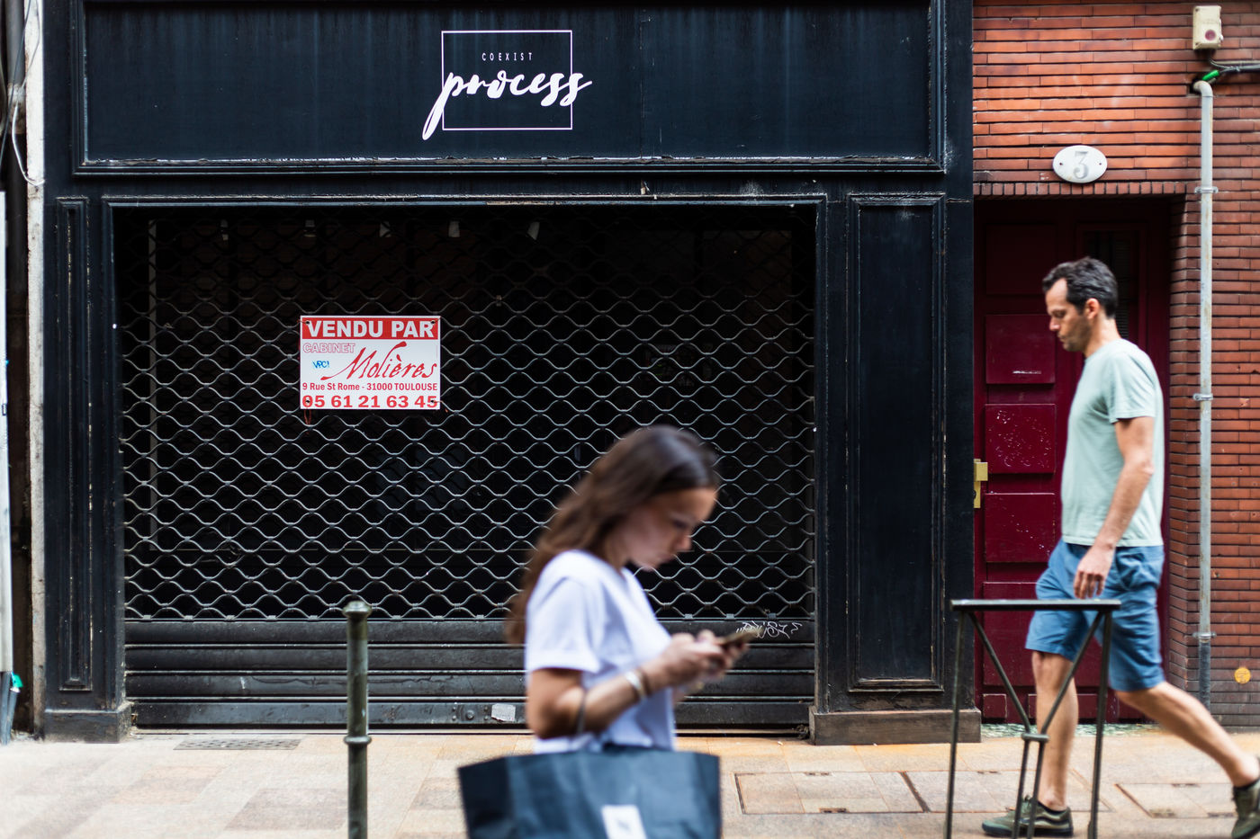 Des locaux commerciaux sont a louer suite a la fermeture des precedentes boutiques. Toulouse, le 15 juin 2020.