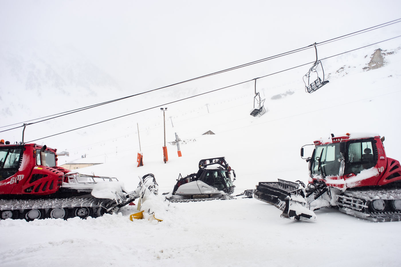 Les stations de sports d hiver poursuivent le gouvernement francais en justice pour maintenir les remontees mecaniques en service pendant les vacances de fin d annee. Illustrations de la station de la Mongie - Le Grand Tourmalet ou les professionels preparent le site. La Mongie, le 9 decembre 2020.