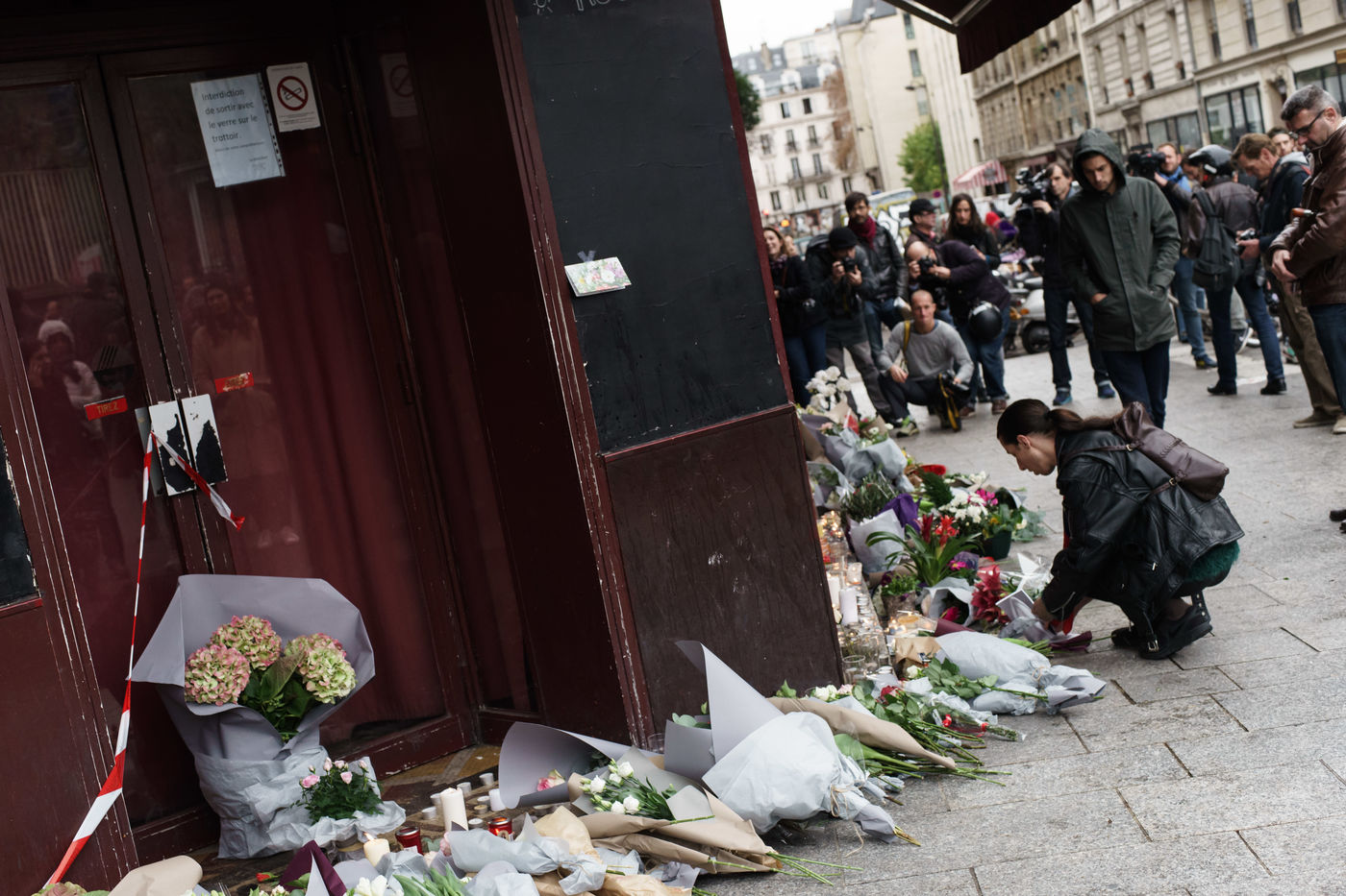 Les parisiens rendent hommage aux victimes des attentats du 13 novembre à Paris.