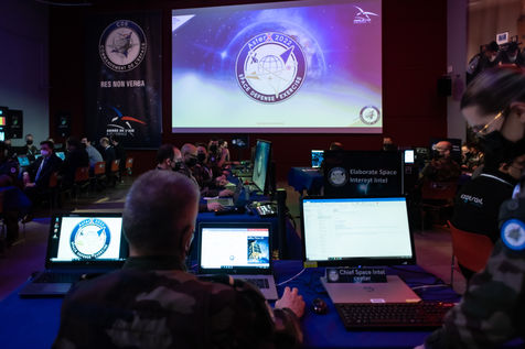 Second edition of the military space exercise AsterX led by France to ensure the security of civil and military satellites in charge of Earth observation, surveillance and telecommunications, at the Cite de l'Espace, Toulouse south west of France on 4 March 2022.
