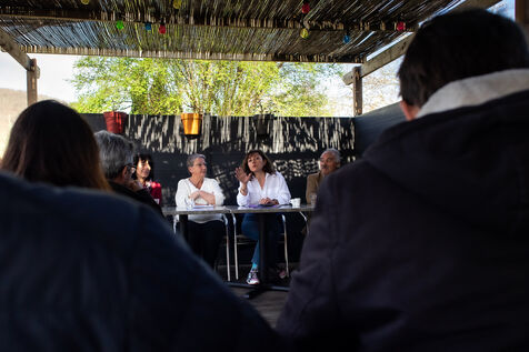 La presidente de la region Occitanie Carole Delga apporte son soutien lors d une conference de presse a la candidiate PS Martine Froger en vue du second tour des elections legislatives partielles dans la premiere circonscription d Ariege.