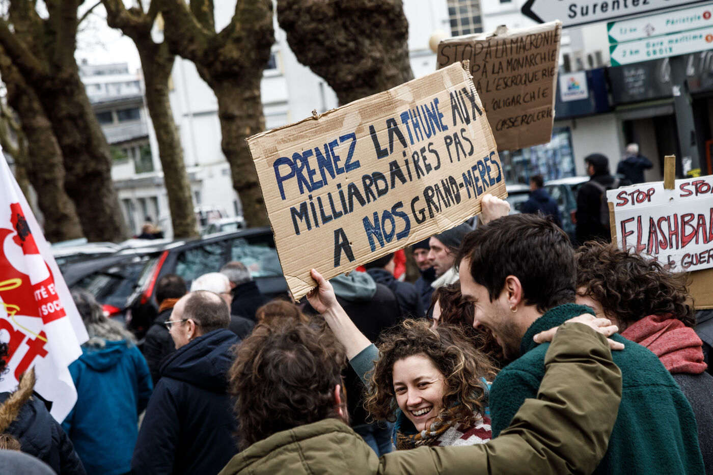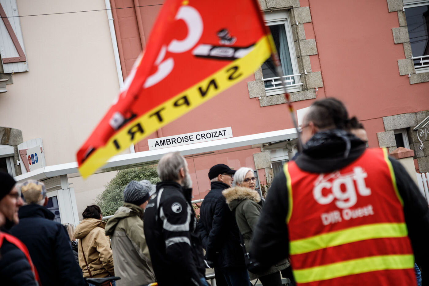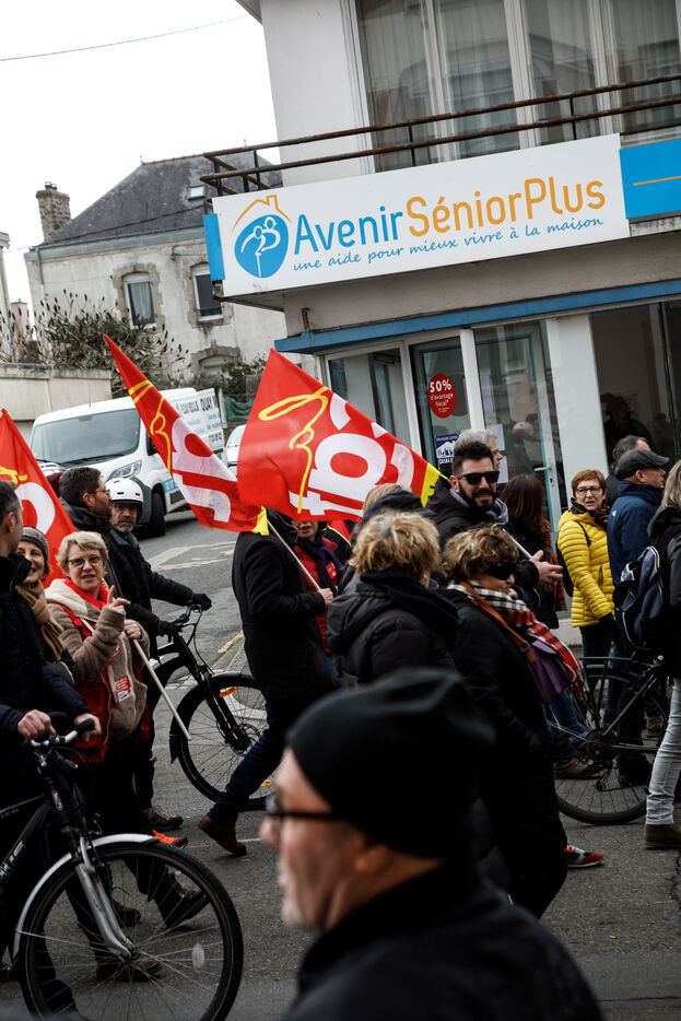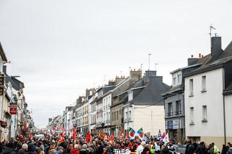 7 March 2023, the sixth day of inter-union mobilisation against Elisabeth Borne's government pension reform. The unions' slogan: stop France. In Lorient, in Brittany, two demonstration processions, one from Lorient and the other one from Lanester, merged in front of the City Hall.