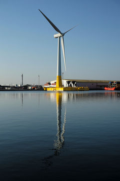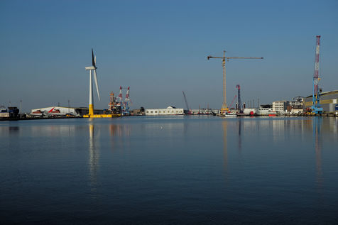 La première éolienne flottante de mer en France, Floatgen ID1, dans le Port de Saint Nazaire sera déployée au large du Croisic début 2018. Saint Nazaire, le 14/10/2017.
