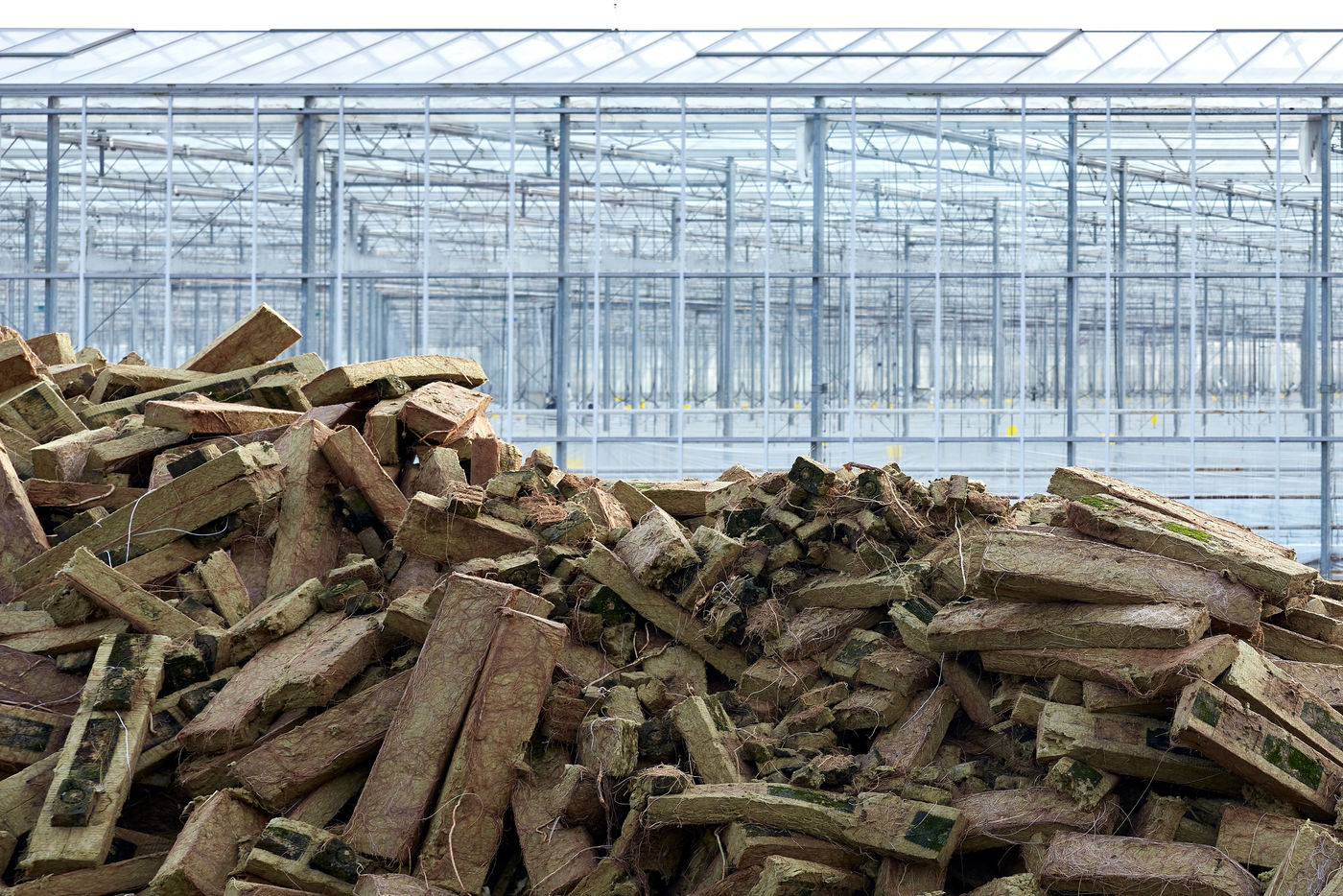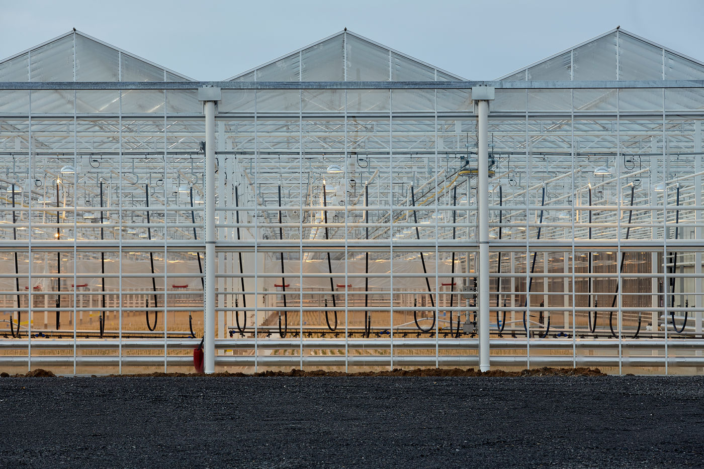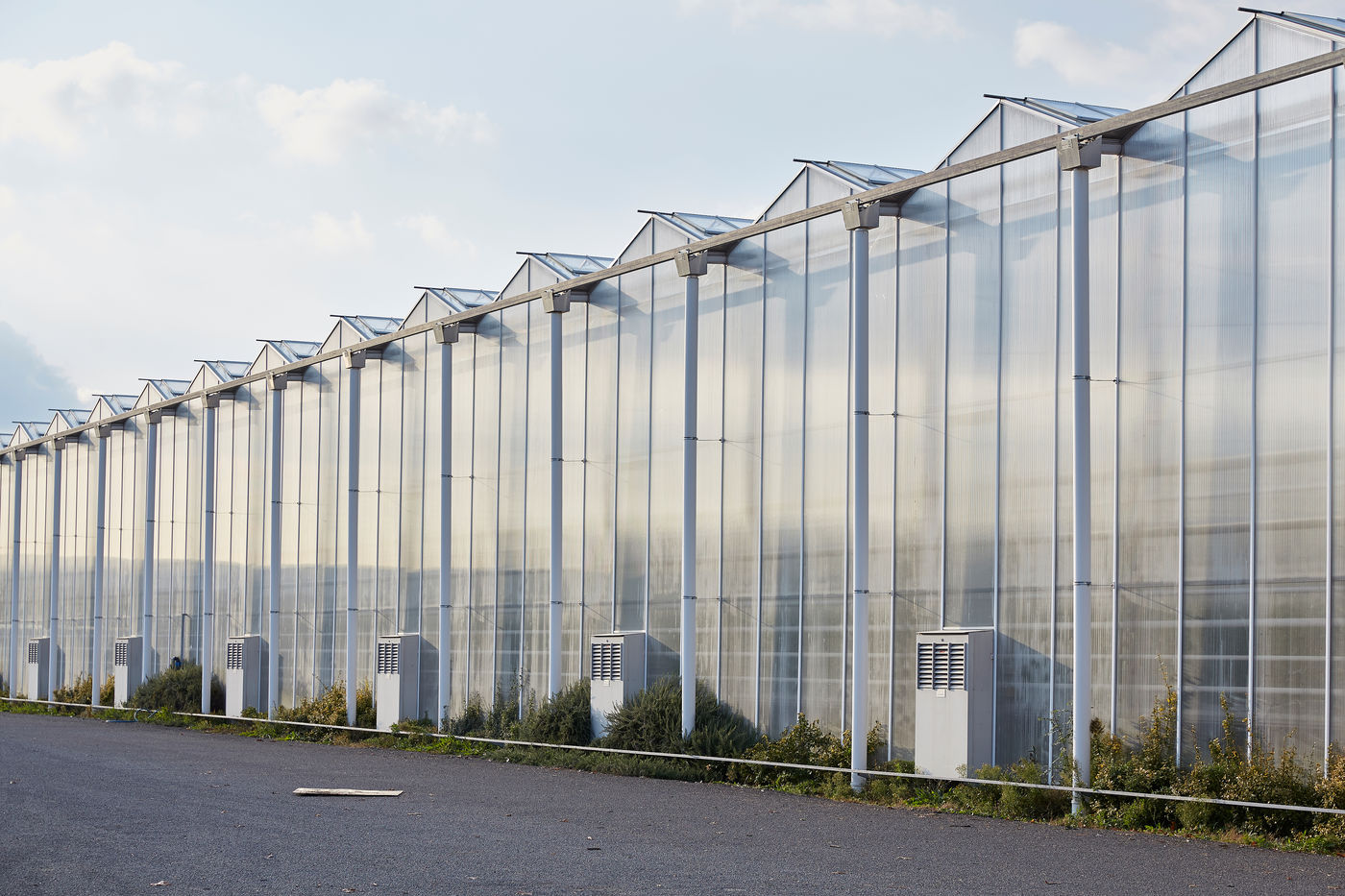 Une des nombreuses serres à proximité de la ville de Nantes. Cette agriculture urbaine et périurbaine sous serre assure une sécurité alimentaire avec un approvisionnement local des grandes métropoles dans un contexte où la crise du Coronavirus souligne les fragilités d'un modèle basé sur une logistique en flux tendu mondialisée. Cette série de photos réalisées avant le confinement illustre une agriculture intensive qui semble sortir d'un film futuriste tant elle est parfois industrialisée, automatisée... afin d'offrir sécurité alimentaire et produits compétitifs à des bassins de population densément peuplé. Mais à quel prix et coût écologique ?