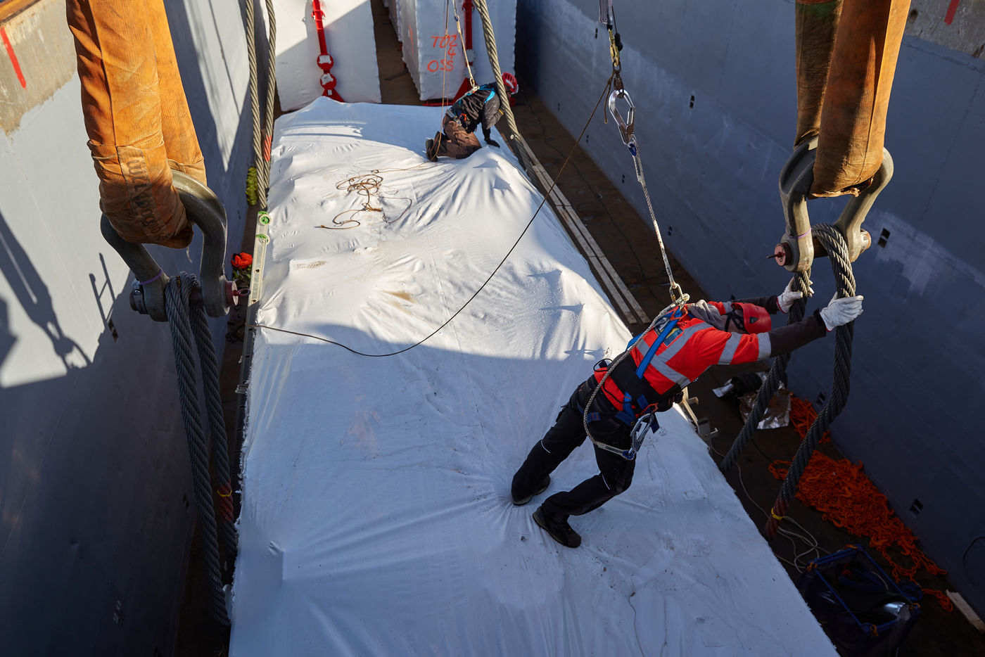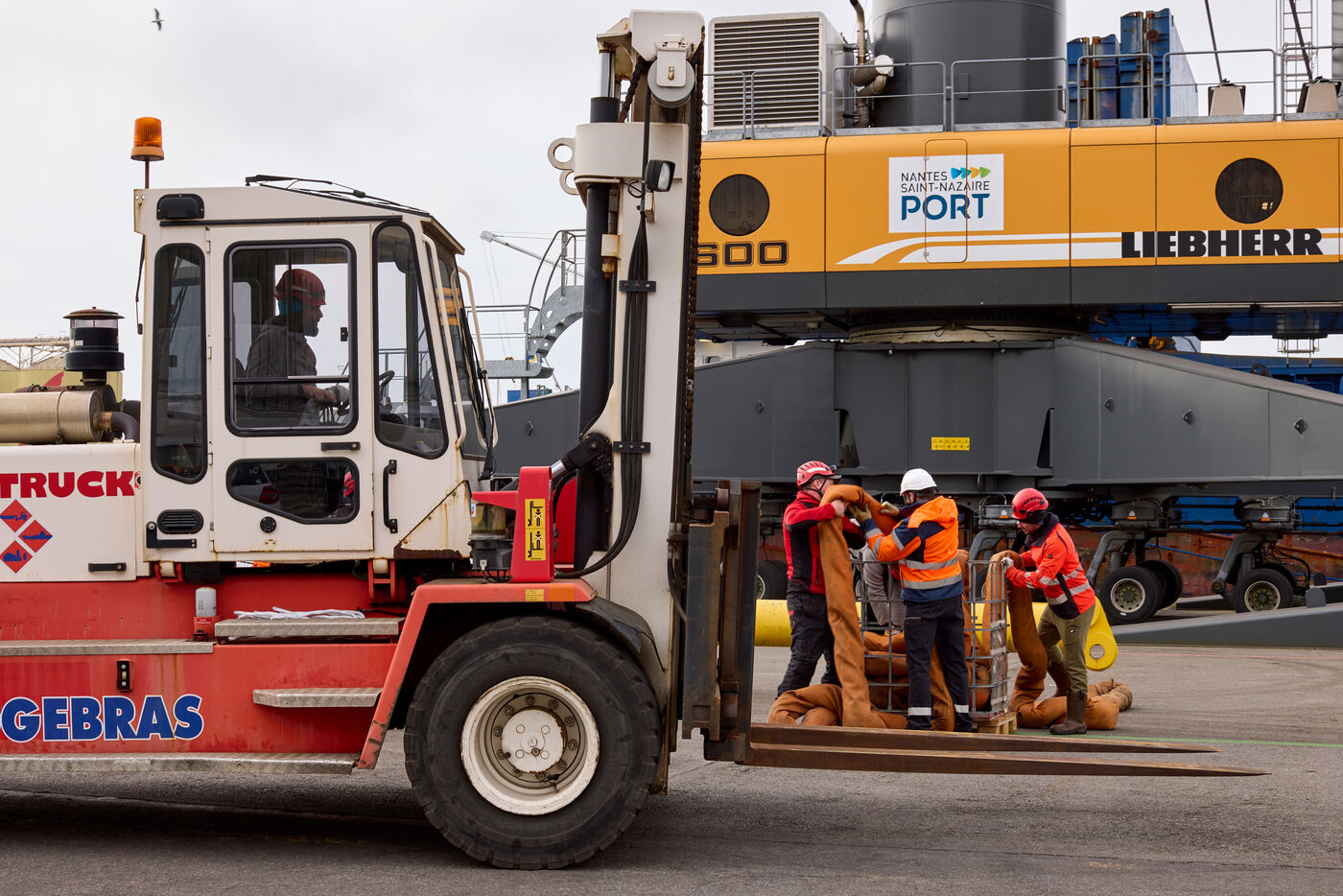 For the past three years, I have been documenting the life of the dockworkers at the Grand Port Maritime de Nantes Saint-Nazaire. Day and night, depending on the tides and the weather conditions that determine the arrival time of the ships, and whatever the goods, they load or unload them in teams on the quays of Chéviré, Montoir-de-Bretagne and Saint-Nazaire.