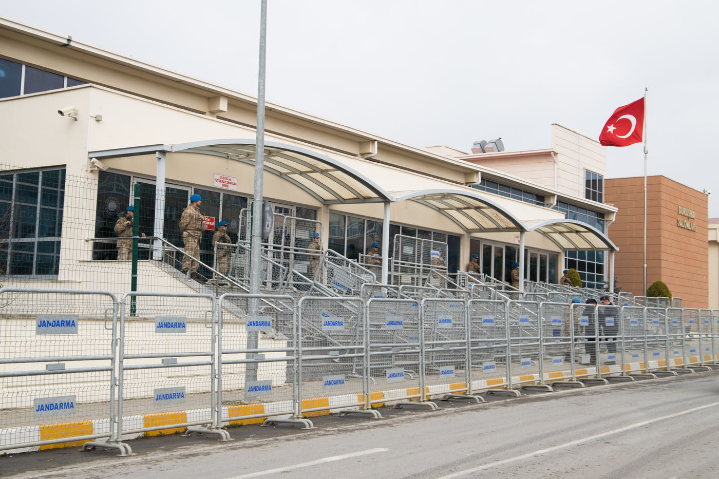 During the fifth hearing of Gezi trial on January 28, 2019 in Istanbul, lawyers take a break outside the Silivri courthouse. Sixteen leading Turkish civil society leaders are accused of seeking to overthrow the government during the "Gezi Park" protests of 2013.