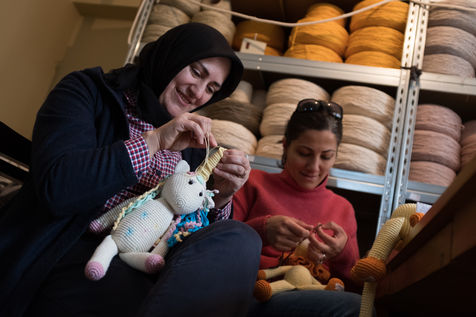 Enfin Izabela Ersahin nous a ouvert les portes de l atelier Bebemoss. Izabela, pendant une grossesse compliquee est obligee de rester a la maison. Elle fait du crochet pour passer le temps et produit ainsi de magnifiques peluches qui suscitent beaucoup d interet sur Internet. Aussitot son premier stock vendu, elle decide de passer une annonce dans le journal pour engager une femme qui puisse l aider. Elle se retrouve a devoir gerer des centaines d appels de femmes interessees par son offre. L une d entres-elles se prenomme Zeynep Gumus, et elle deviendra par la suite son associee. Sept ans plus tard Zeynep et Izabela font travailler plus d une centaine de femmes turques et syriennes a domicile. Une solution qui permet a ces dernieres de gagner un salaire decent tout en continuant a s occuper de leurs enfants a la maison.