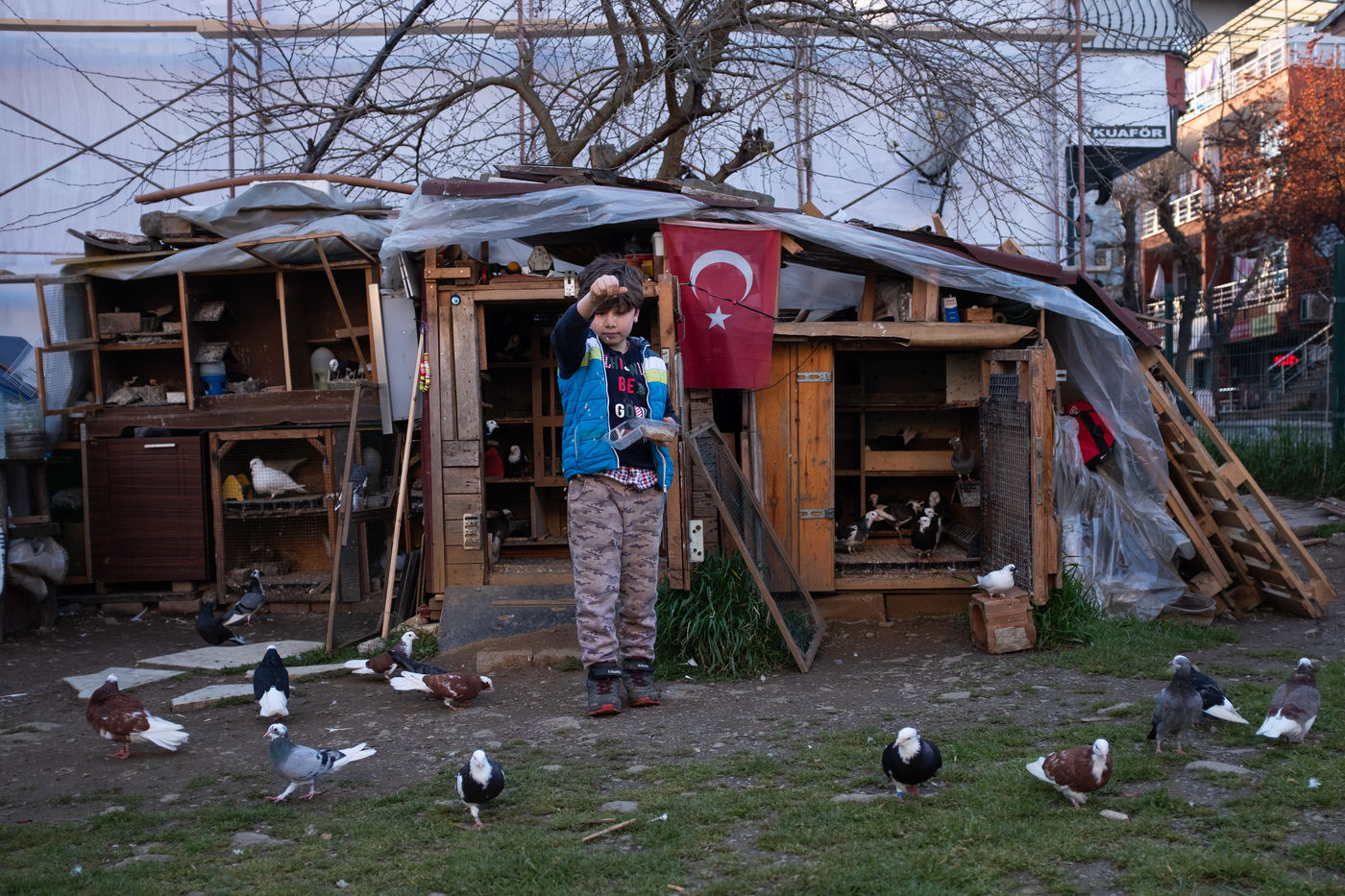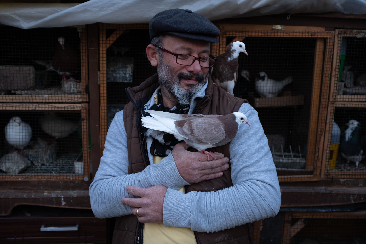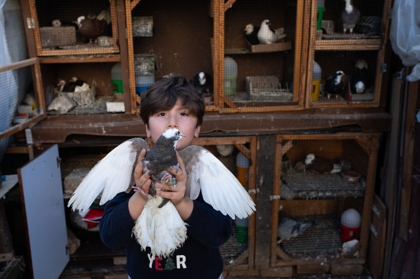 Yalcin Karci, 50, raises mainly Selanik Donek pigeons, which means Thessaloniki turners, on a plot of land across the street from his home in Tarabya, in the heights of Istanbul. His son also likes to spend his time watching the pigeons fly, it gives him a real sense of freedom during the repeated curfews imposed during the pandemic in Turkey.
