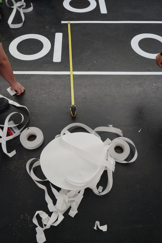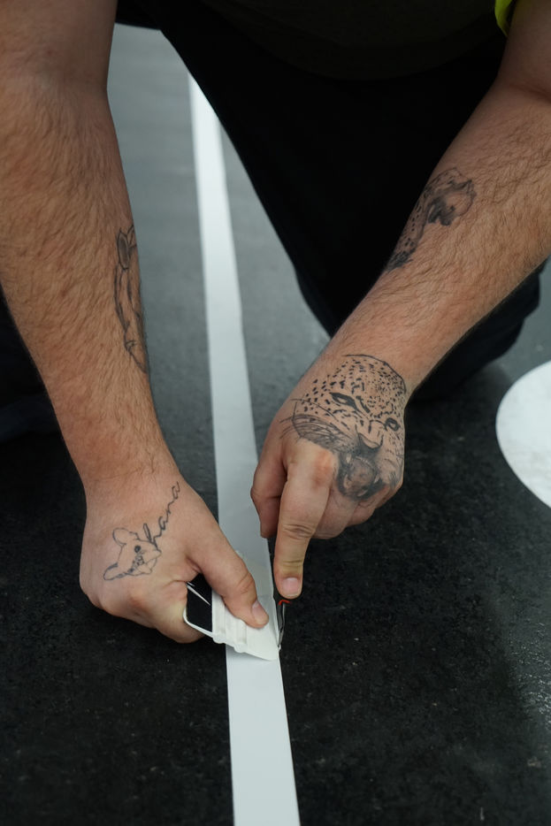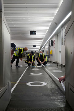 Ils ont ainsi posé trente kilomètres d'adhésif que ce soit dans le hall d'entrée, sur les quais, dans les ascenseurs, pour toutes sortes de file d'attente...