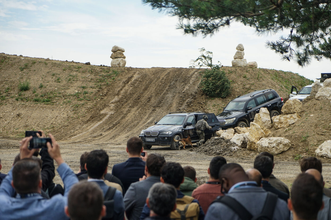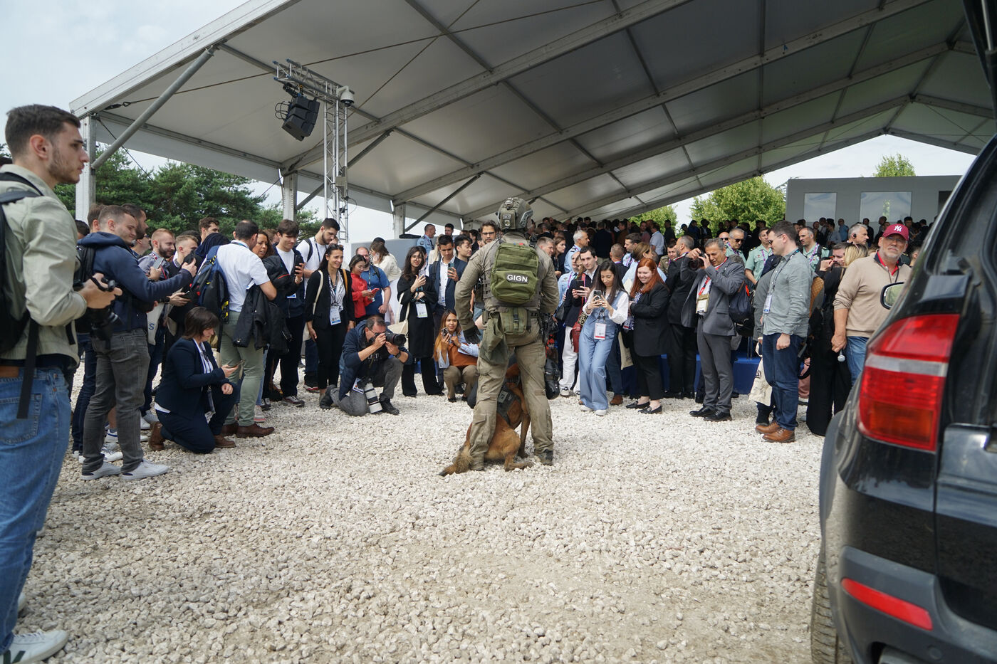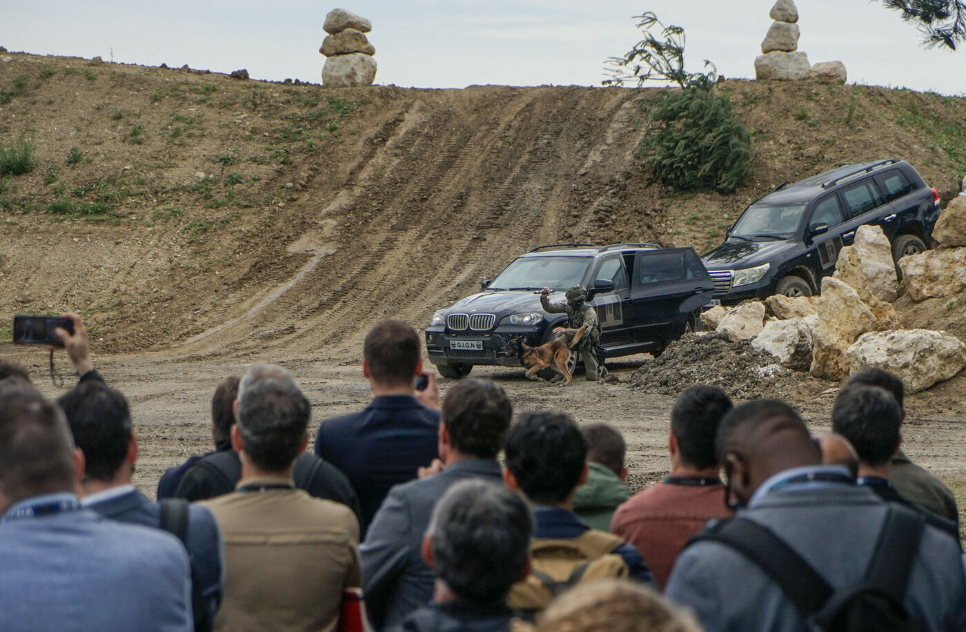 During the show, there will be dynamic demonstrations by various police forces, including the GIGN, which is simulating a terrorist attack, with the help of a dog handler.