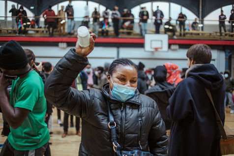 C'est pacifiquement que le collectif Réquisitions a occupé jeudi 6 mai 2021, en milieu de journée, le gymnase Japy, dans le 11ème arrondissement de Paris pour réclamer la mise en place de solutions d'hébergement pour 350 personnes dont des familles avec enfants. Les personnes accompagnées des associations sont restées sur place plusieurs heures. L'humeur pacifique et bonne enfant de l'opération n'empêchaient pas l'inquiétude des personnes sans abri qui redoutaient de devoir passer une nouvelle nuit de plus sans solution d'hébergement. Sur place, les mamans occupaient les enfants, des personnes se reposaient sur des bancs quand d'autres tuaient le temps en jouant au foot. Vers 16h les organisateurs ont finalement annoncé que des solutions d'hébergement avaient été trouvées.