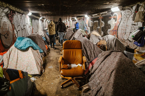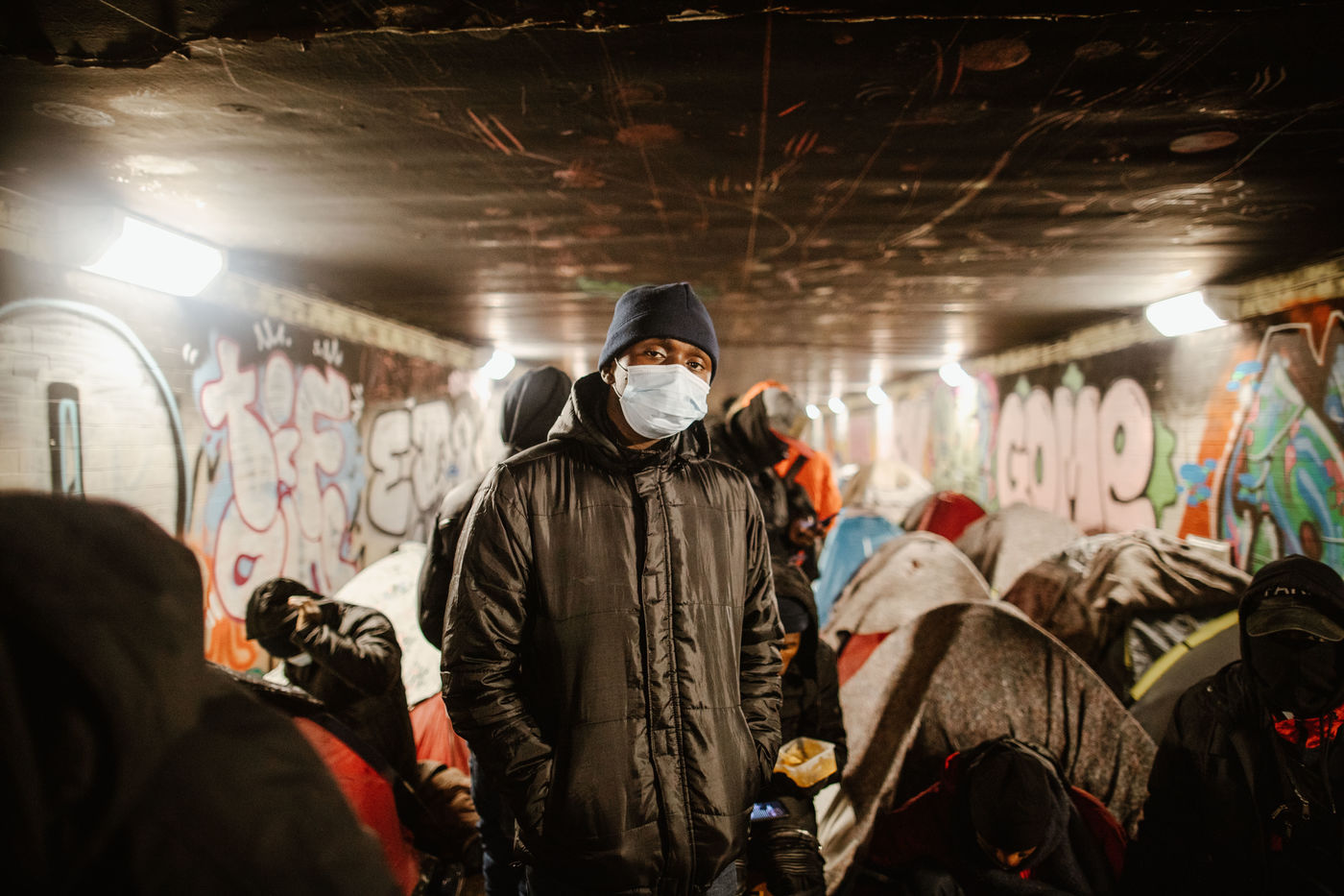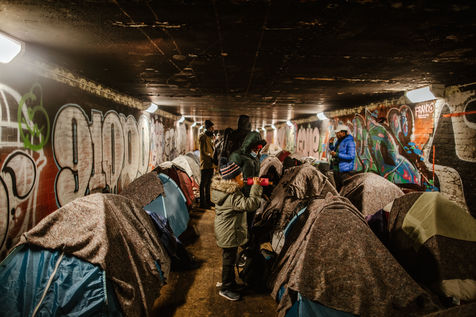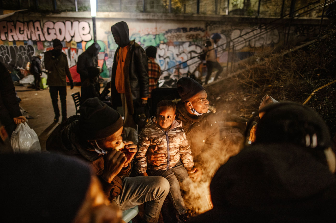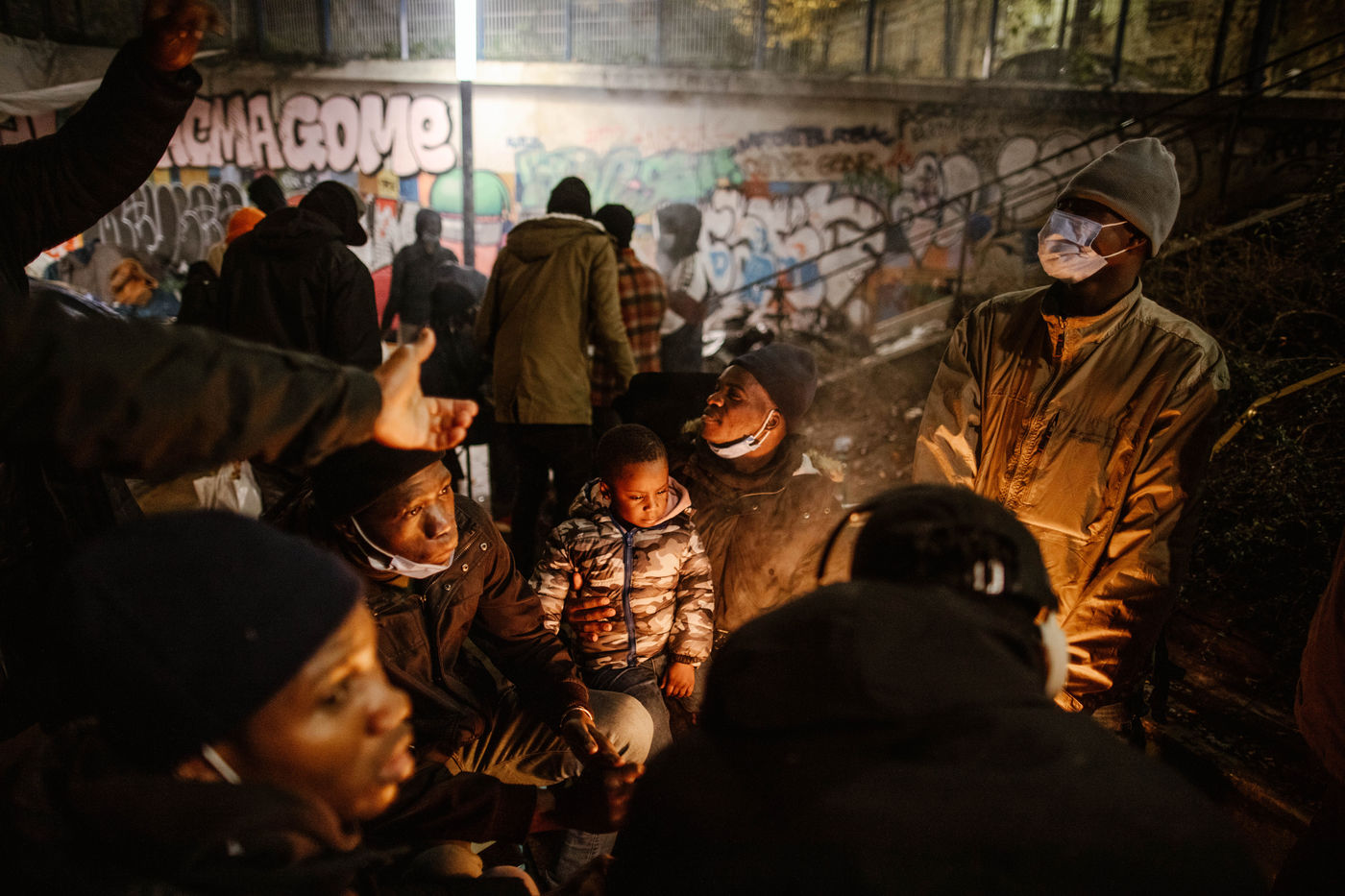 "A few weeks ago they were around 80, today I would say that they are nearly 150 including about fifteen children", testifies Fadila Benrabah, president of the association A la croisée des rue, which regularly comes to carry help to exiled families sheltered in a tunnel between Paris and Pré Saint-Gervais. This Monday, November 29, it was barely 3 degrees at night in Paris. A few young people were playing soccer outside the tunnel. Others warmed themselves around a wood fire, in a metal container. Muhammed, in his twenties, originally from Gambia, testifies to the difficulties he encounters: "I had recently been operated on for appendicitis. I was hospitalized for two days, then I had a hotel for 3 days. and now I'm back on the streets. It's very difficult for me. " At 8 p.m., the families return to the camp. Moms make their way with their strollers in the middle of the tents. Garatou, 30, testifies: "We are all tired, the cold and the fact of sleeping outside exhaust us. I am alone with my 3 and a half year old son, we sleep on the floor in the tent. no mattress. My child has lost weight, he doesn't complain like an adult, but when I see him tired, it breaks my heart ". For her part, Fadila Benrabah is indignant at the presence of babies in the camp: "there are babies with diapers who drink milk. We have to bring thermos of hot water so that they can drink their bottles. ". Families exiled from the tunnel depend entirely on associations which provide them with food aid. That evening, the volunteers of Utopia56 were distributing blankets. Despite a demonstration Sunday, November 28 at Pré Saint-Gervais to alert the authorities, for the moment no shelter solution has been found. Families always sleep outside.