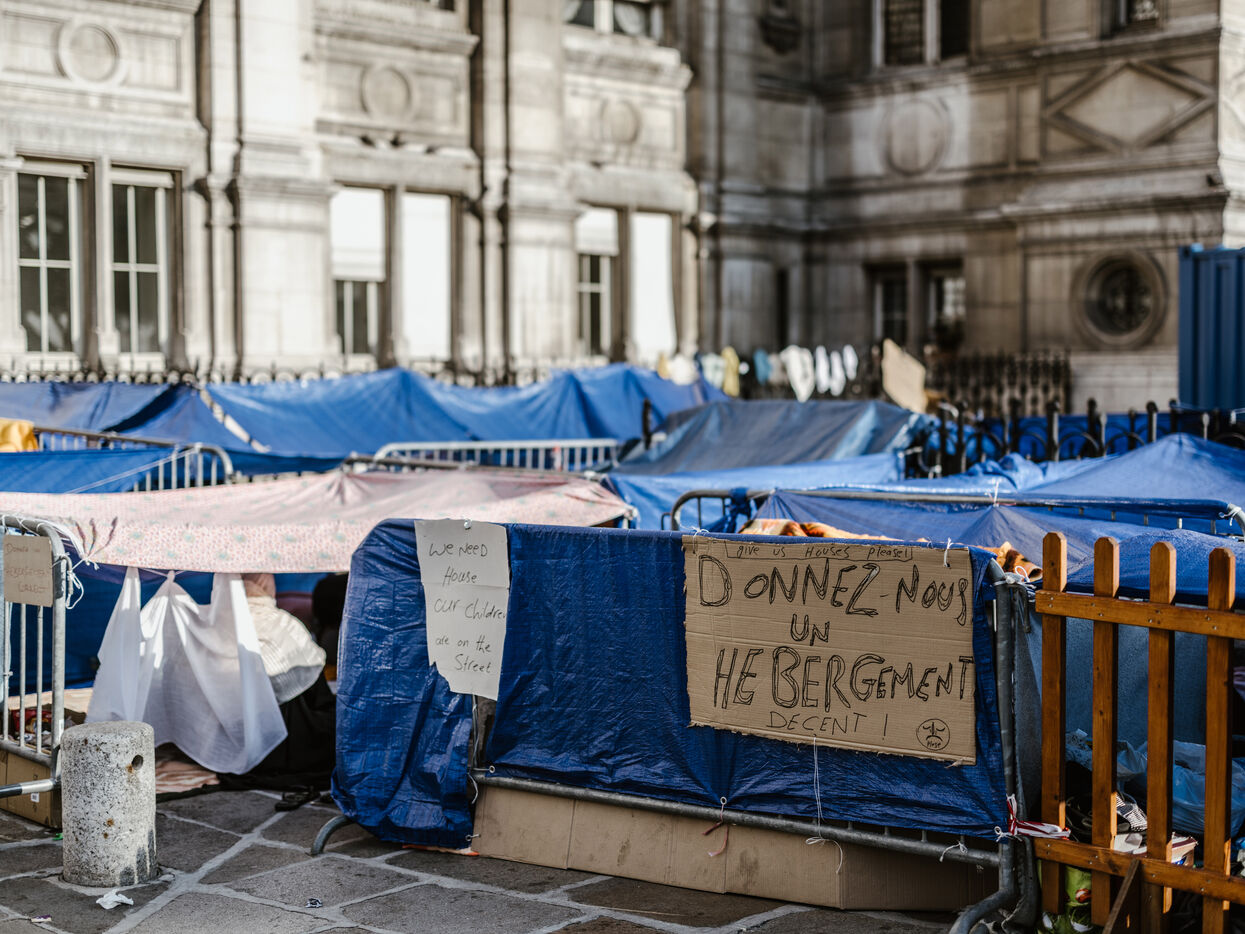 Plus de 250 personnes, en majorité des familles et des femmes seules qui sont à la rue avec leurs enfants, campent depuis une semaine devant l’Hôtel de Ville de Paris afin d’obtenir un hébergement décent. Les familles sont suivies pour la plupart par l’association Utopia56. À Paris, comme dans d’autres grandes villes françaises, l’encampement des personnes exilées traduit le manque de volonté politique d’accueillir dignement, perpétuant les cycles d’installation de campements, d’expulsions ou de mises à l’abri dans un système toujours sous dimensionné par rapport aux réels besoins.