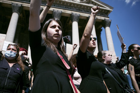 Action militante féministe à la Madeleine suite à l'annonce du nouveau gouvernement.