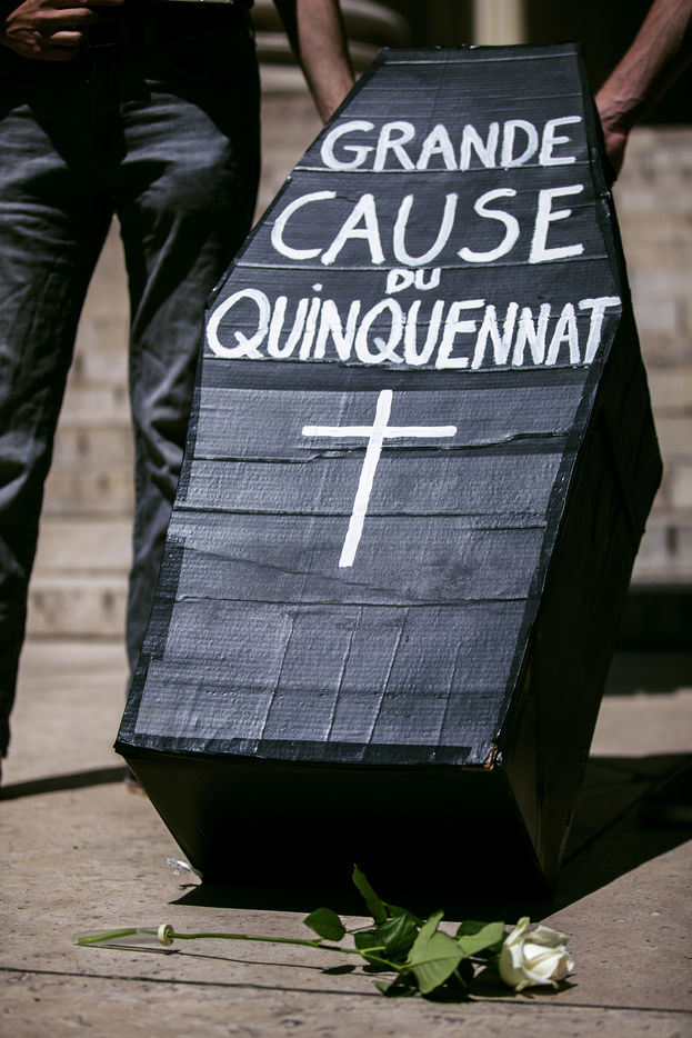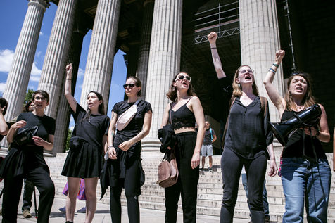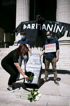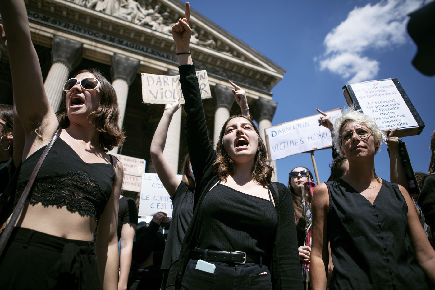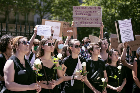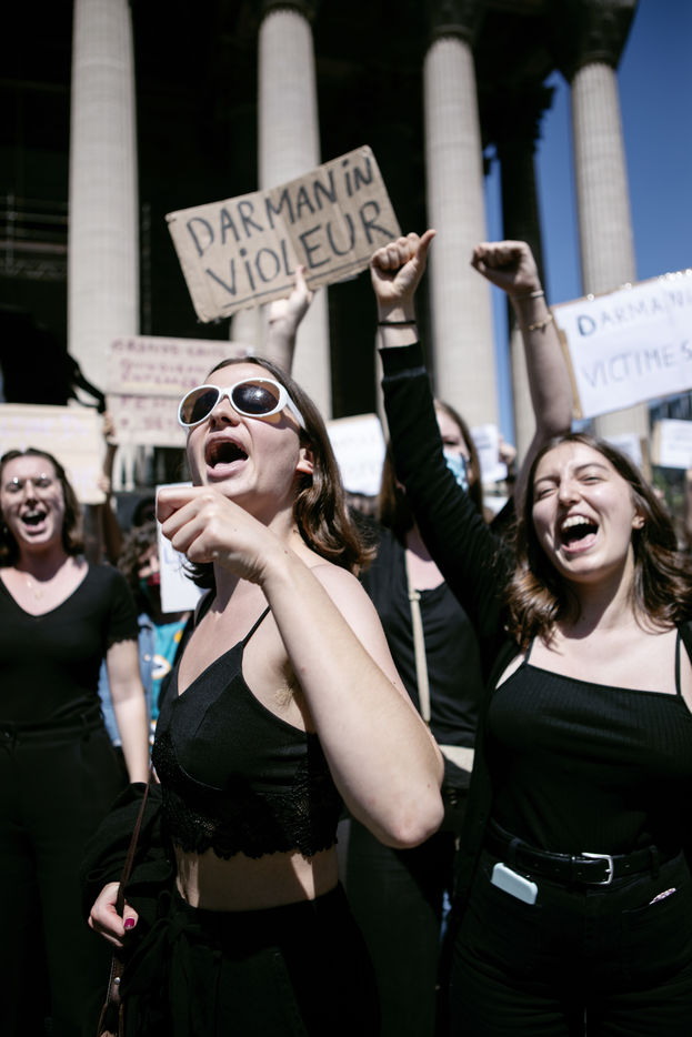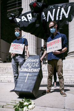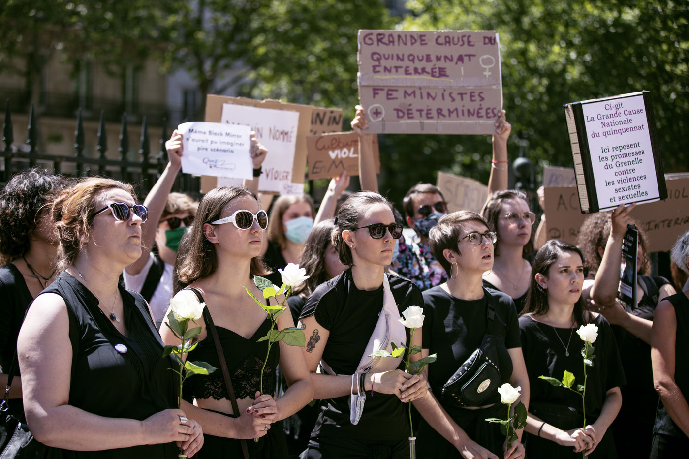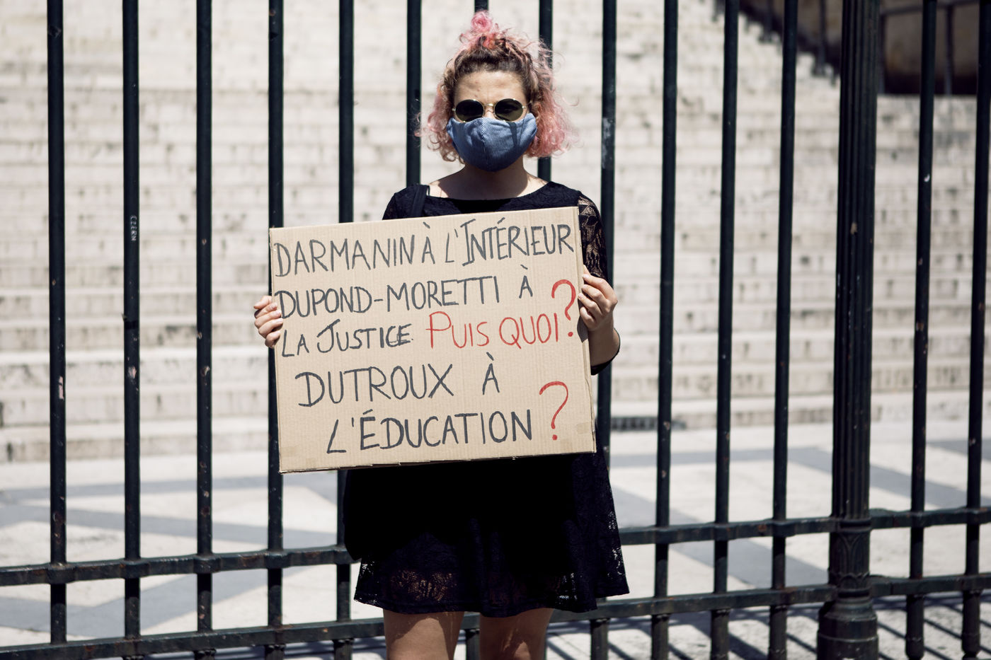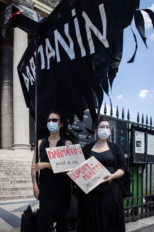Feminist activist action at the Madeleine following the announcement of the new gournement.