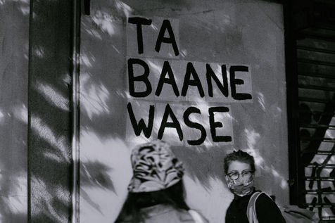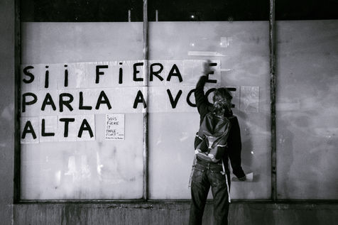 Collage session against feminicides and gender and sexual violence in several languages in order to make feminist slogans accessible.