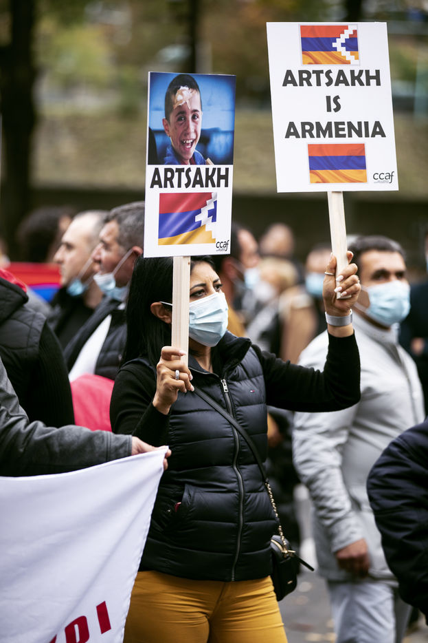 Rassemblement d'Arméniens de France pour exprimer leur solidarité avec les peuples d'Artsakh et d'Arménie qui résistent contre l'agression militaire turco-azerbaïdjanaise.