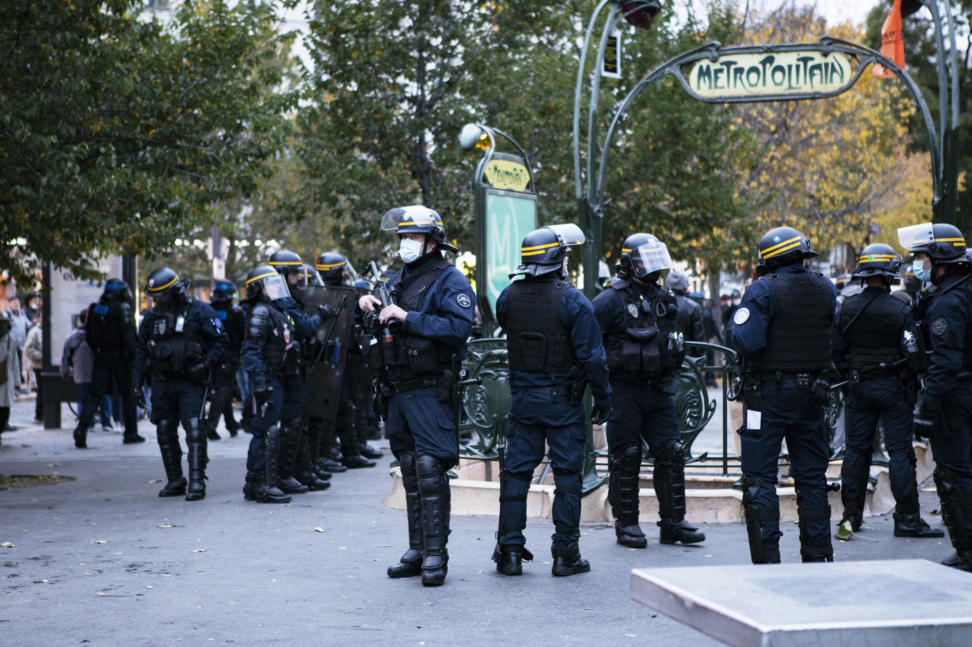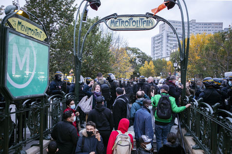 Today a rally was held to protest against the curfew, its effectiveness and its liberticidal effects. This rally was surrounded by the CRS and the BRAV. The police threatened the demonstrators by encircling them and pushing them into the subway.