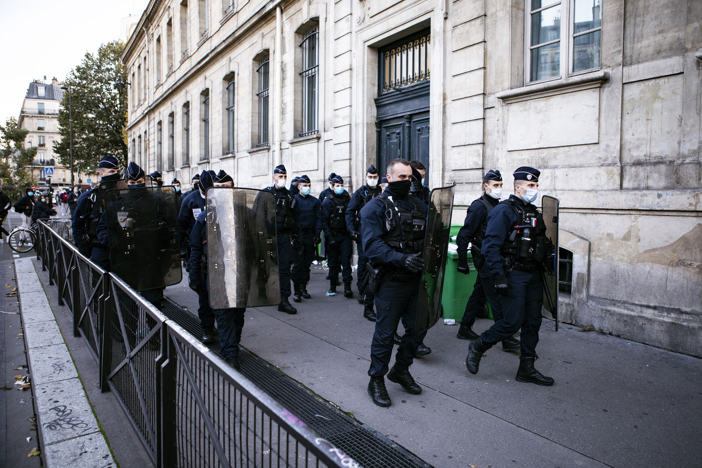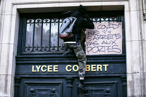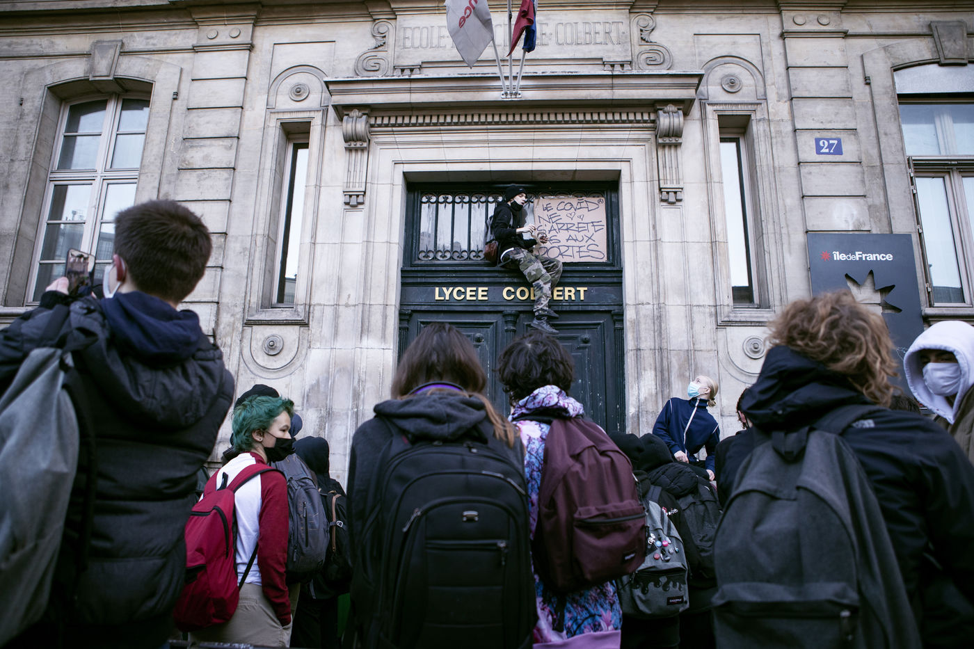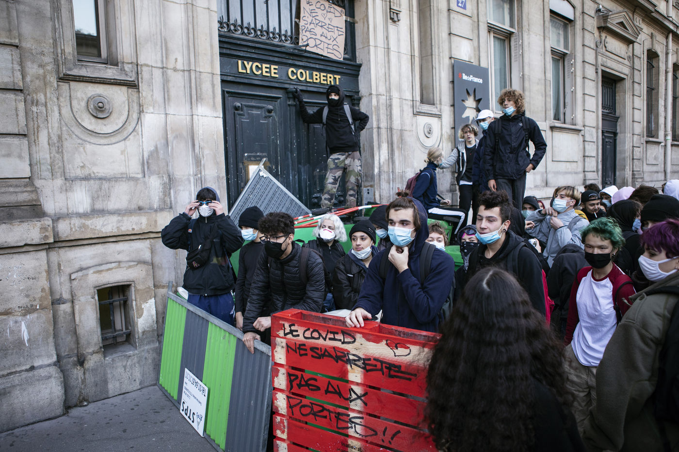 Mobilization of French high schools to fight against student insecurity in the face of Covid-19. Blockade in front of the Colbert high school in the 10th arrondissement of Paris.