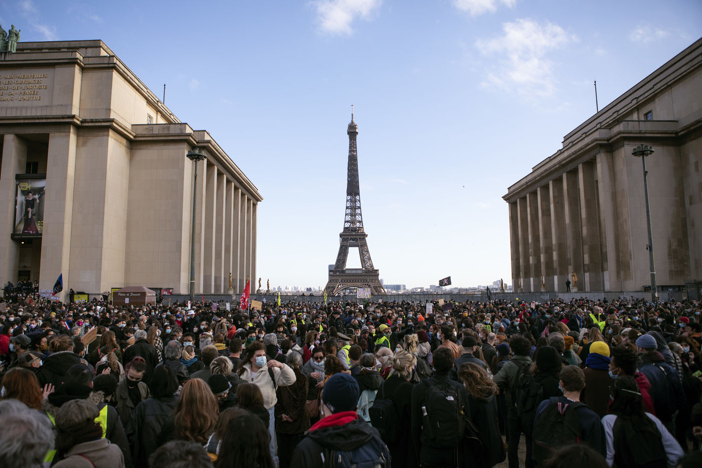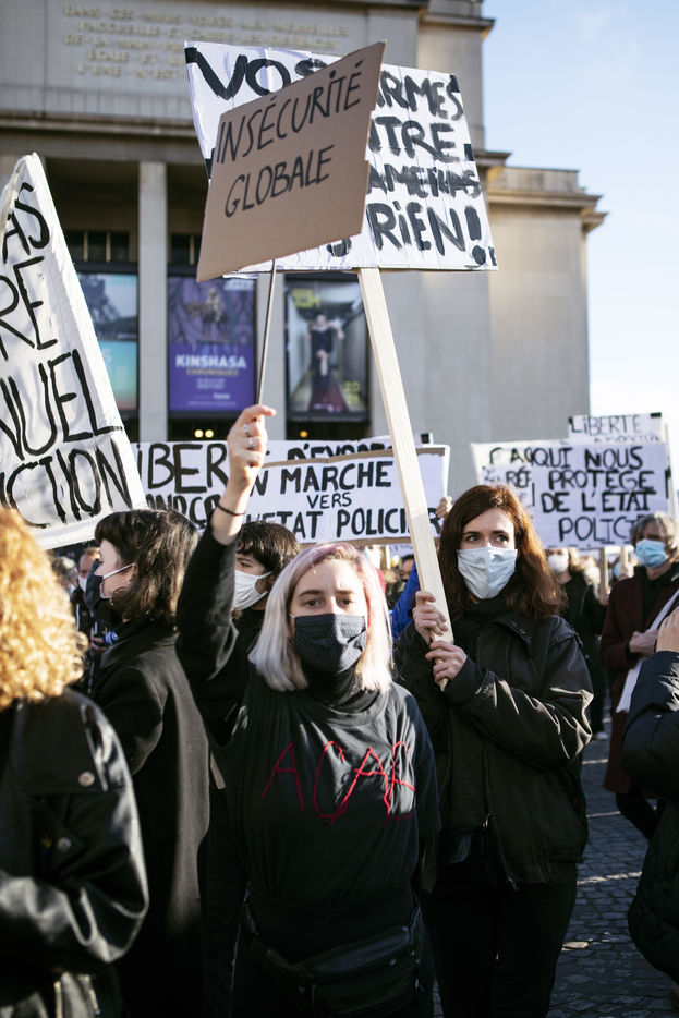 Demonstration at Place du Trocadero against the Global Security Law whose article 24 has just been adopted yesterday at the National Assembly.