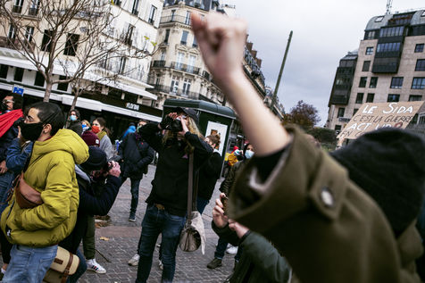 Pour la journée mondiale de lutte contre le sida, Act Up Paris organise un rassemblement devant l'égliste Saint-Eustache.