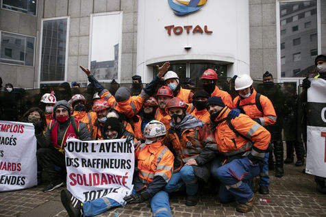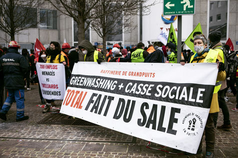 Rally in support of the Granpuits refiners who have been on strike for a month, to fight against the social plan planned by the oil giant.