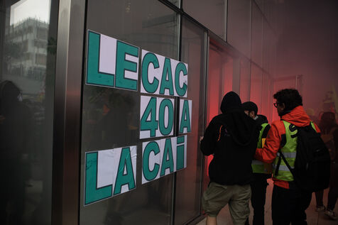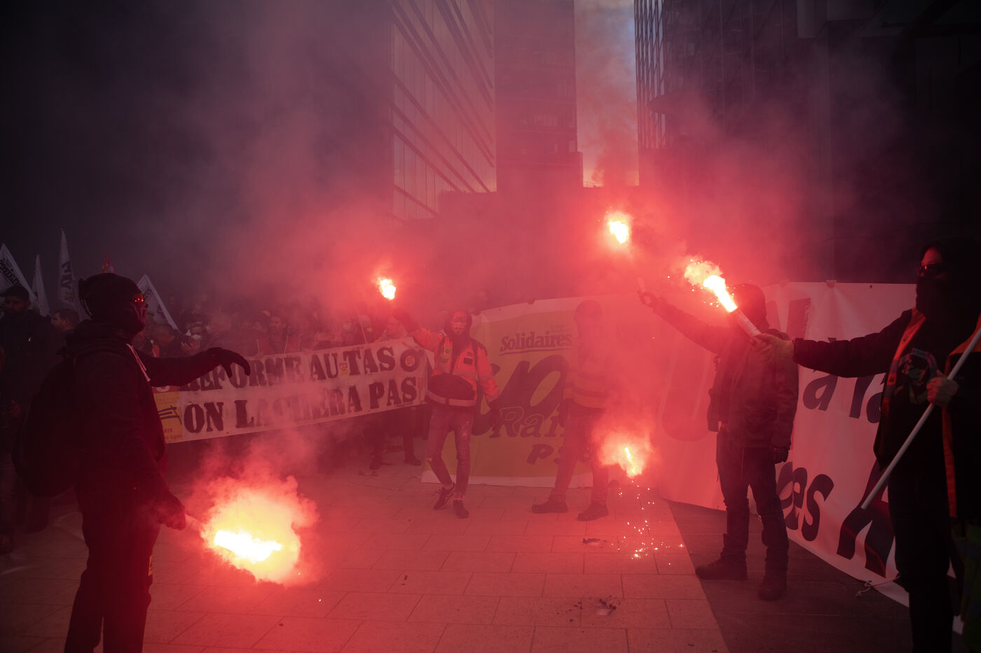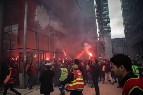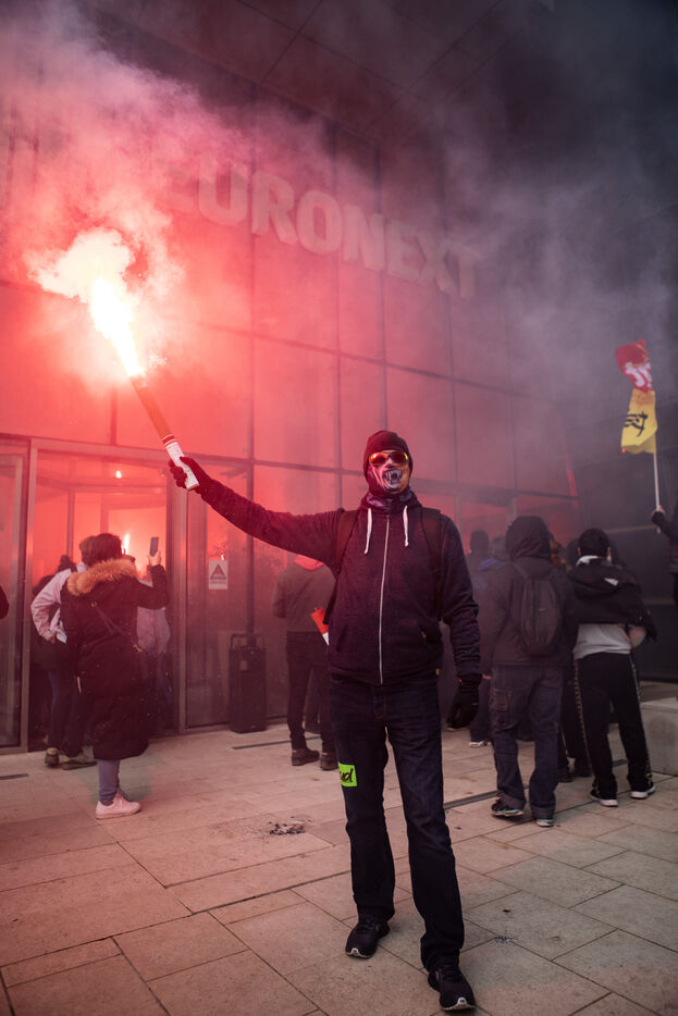 Action of the railway workers. They invade the Euronext tower, the Bourse de la Défense against the pension reform.