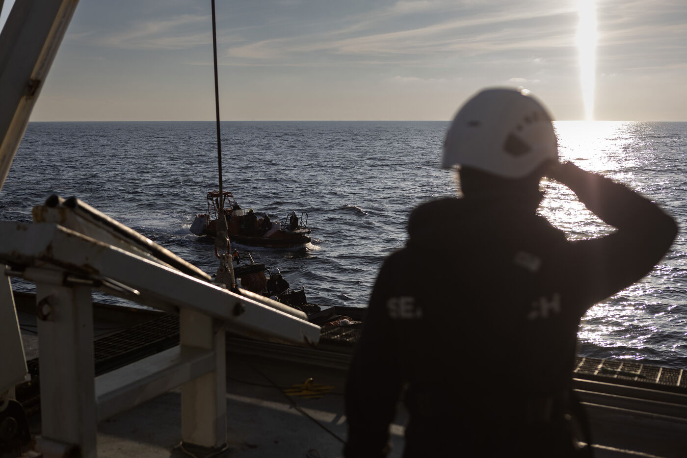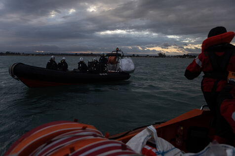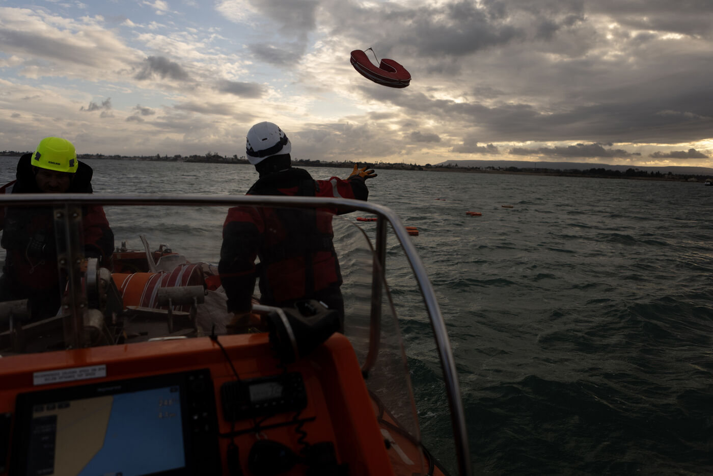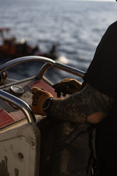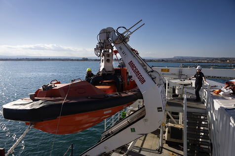 Illustration du bateau humanitaire Sea Watch 5 ainsi que ses entrainements de sauvetage avant les missions de sauvetage de migrants en Méditerranée.