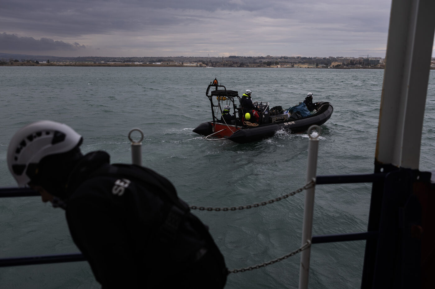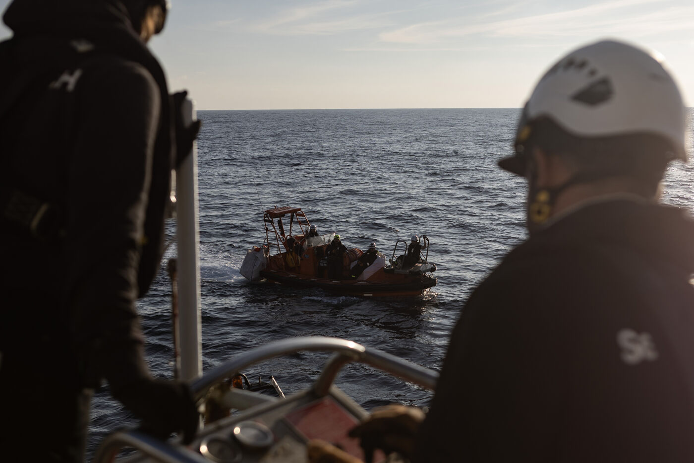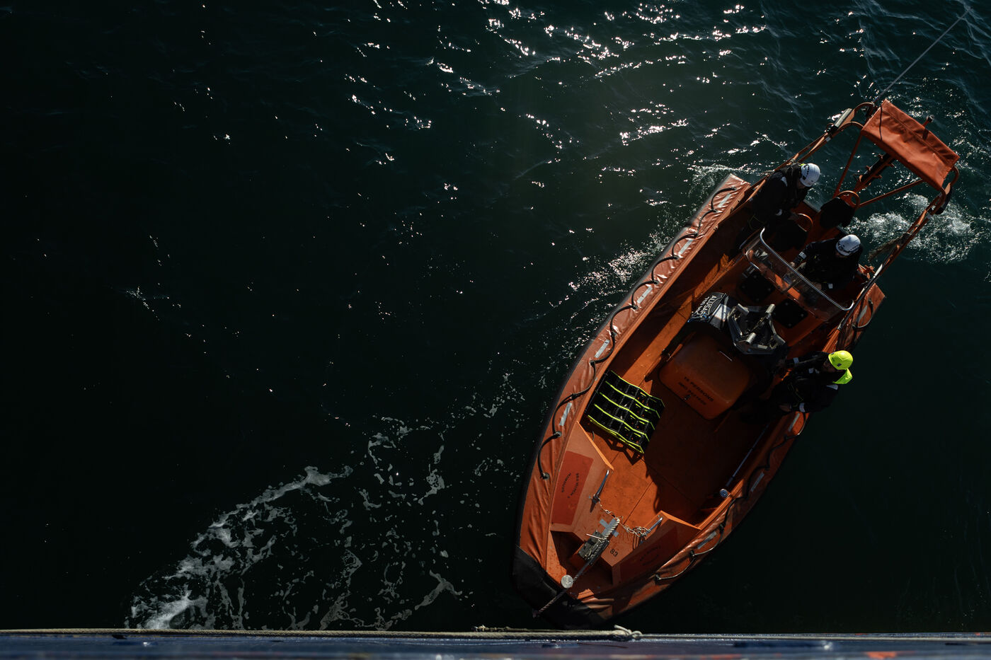 Illustration du bateau humanitaire Sea Watch 5 ainsi que ses entrainements de sauvetage avant les missions de sauvetage de migrants en Méditerranée.