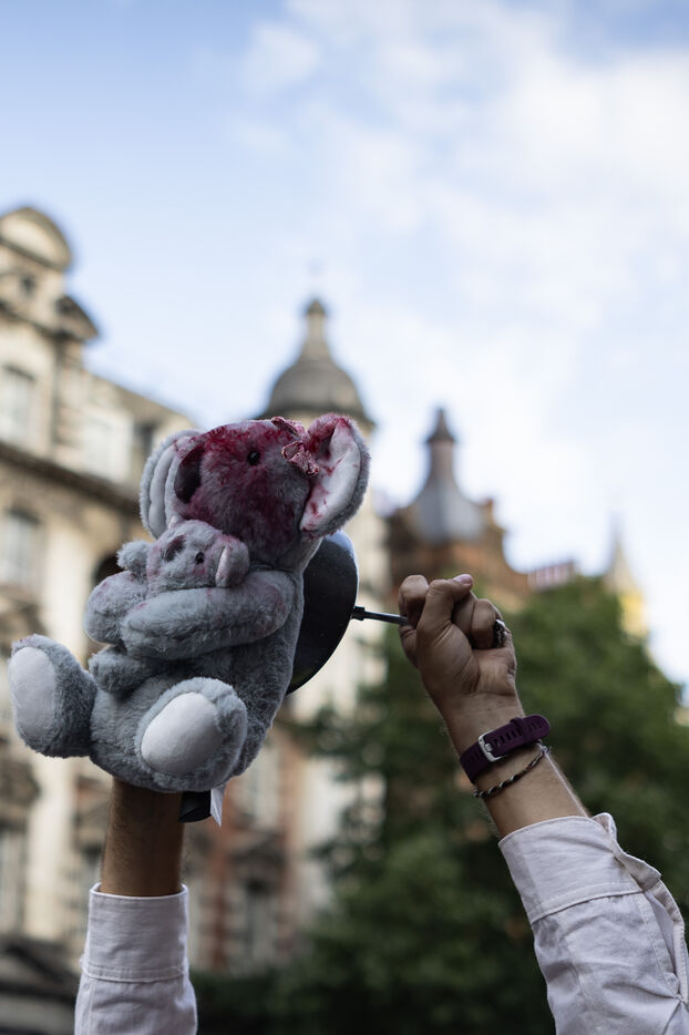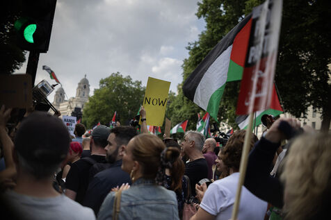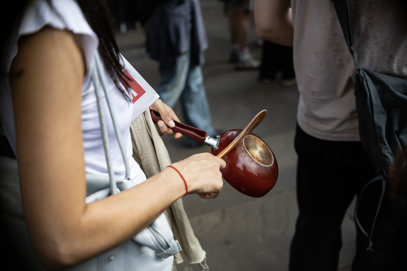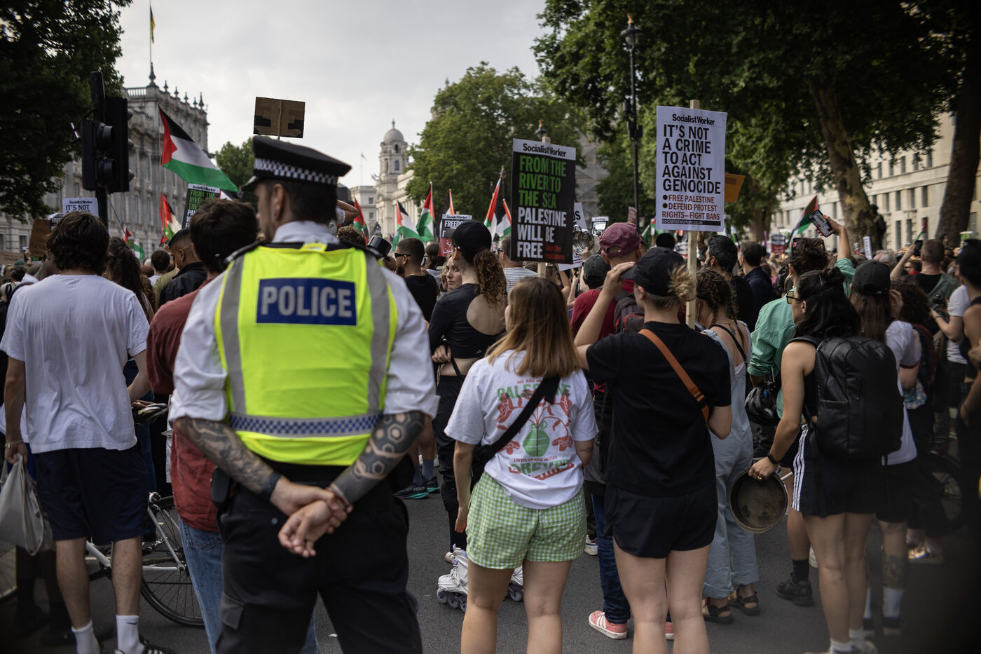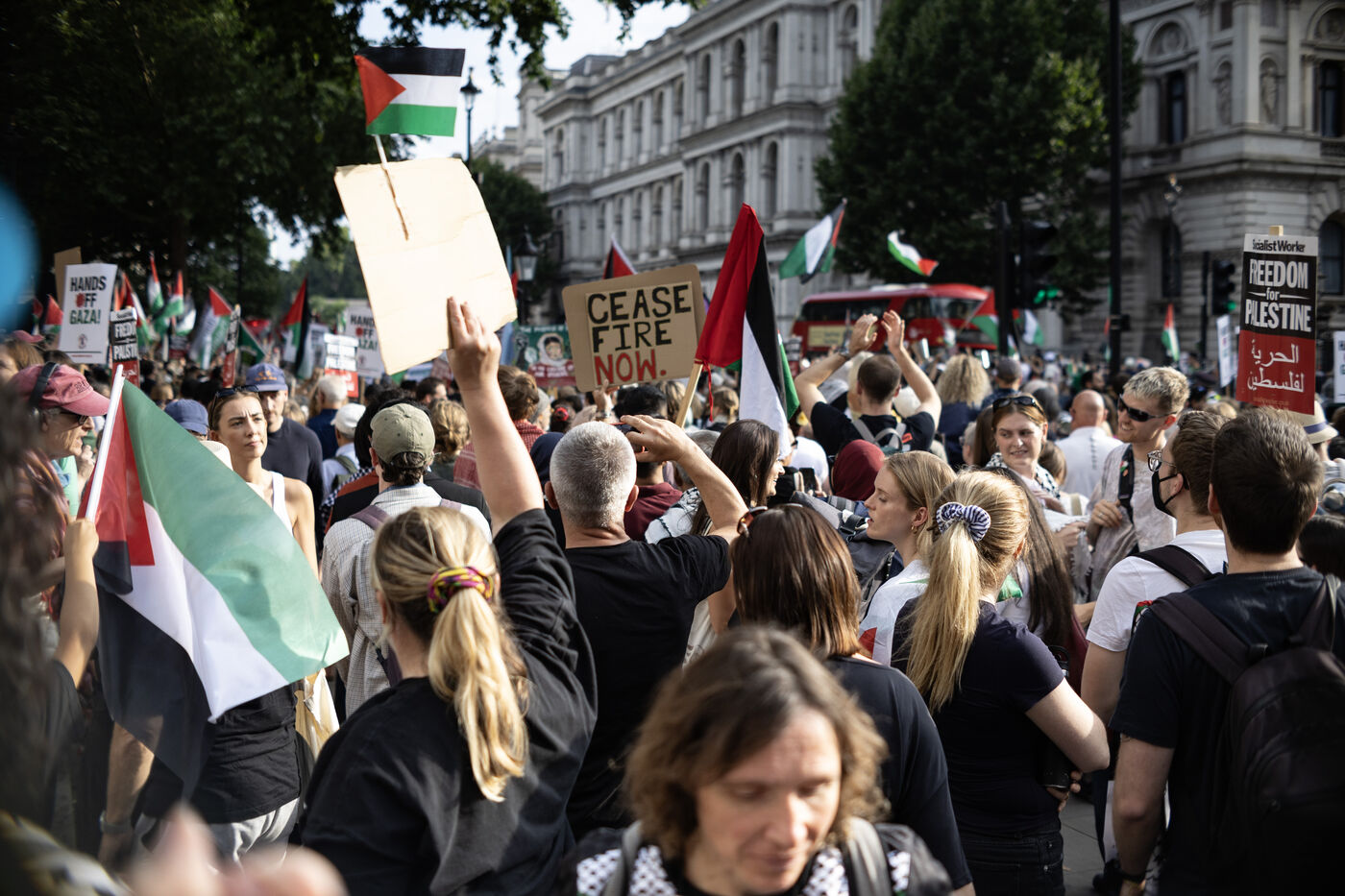 Pro-Palestinian demonstration with saucepans and cooking utensils in front of Downing Street in support of the Palestinian people.
