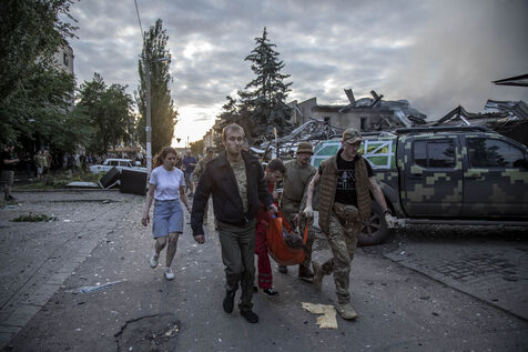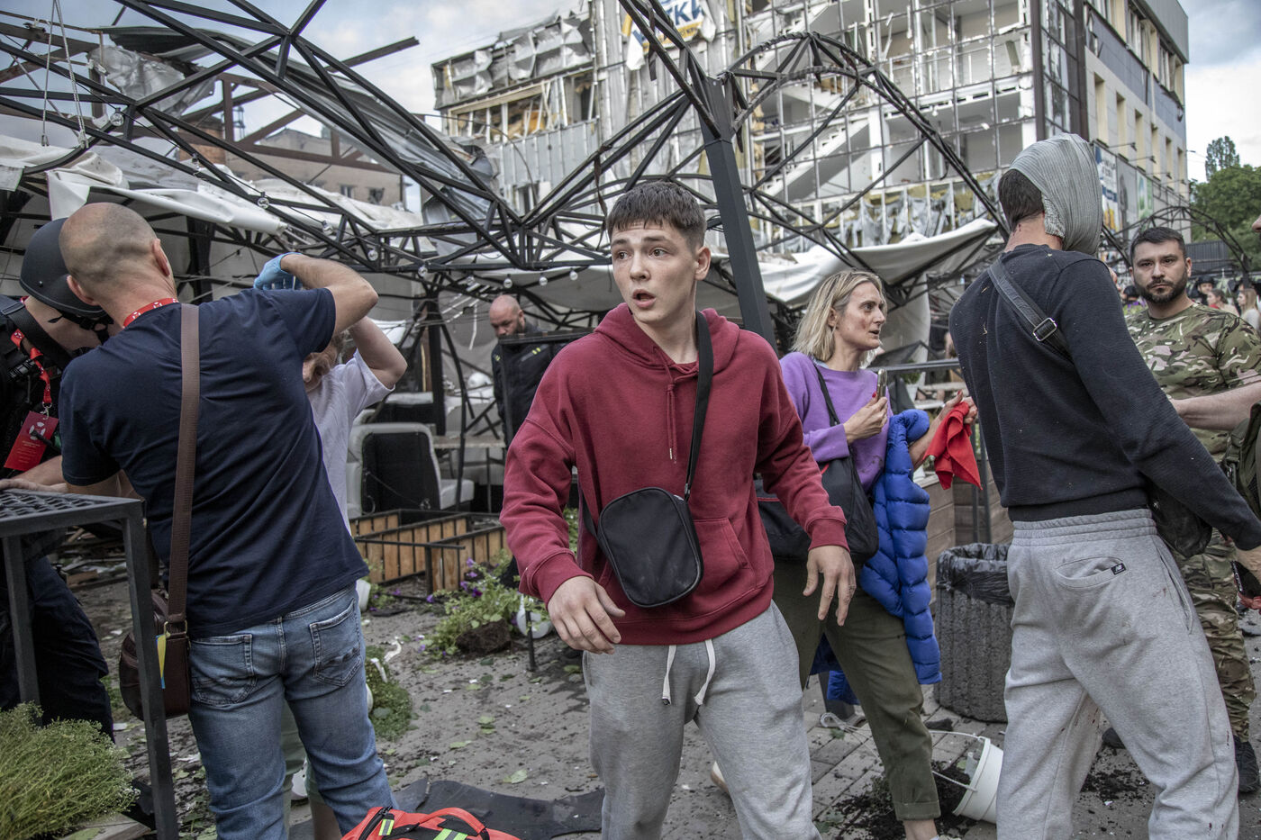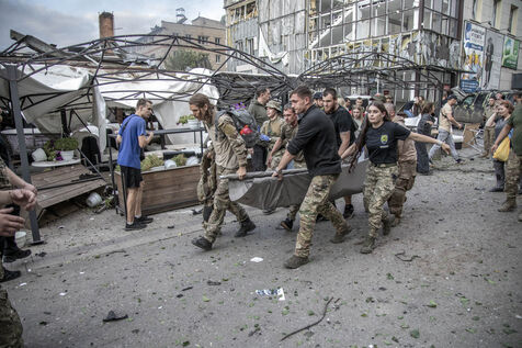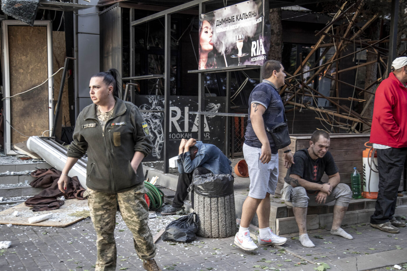 A missile attack in the Ria Pizza restaurant in downtown Kramatorsk City while the Ukrainian counter offensive rages on in the Donetsk region, Donetsk Oblast, Ukraine, June 27th, 2023.