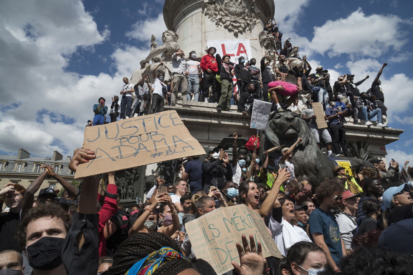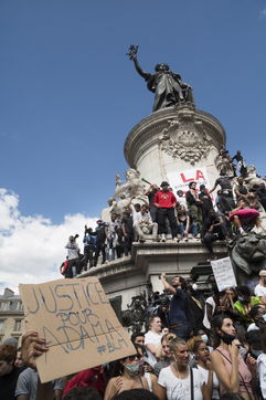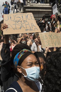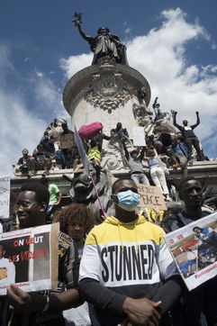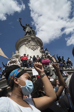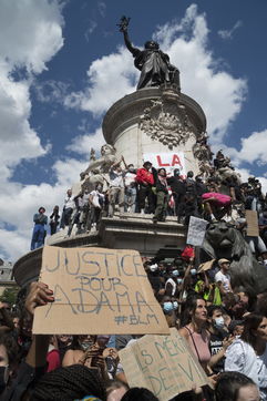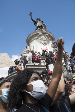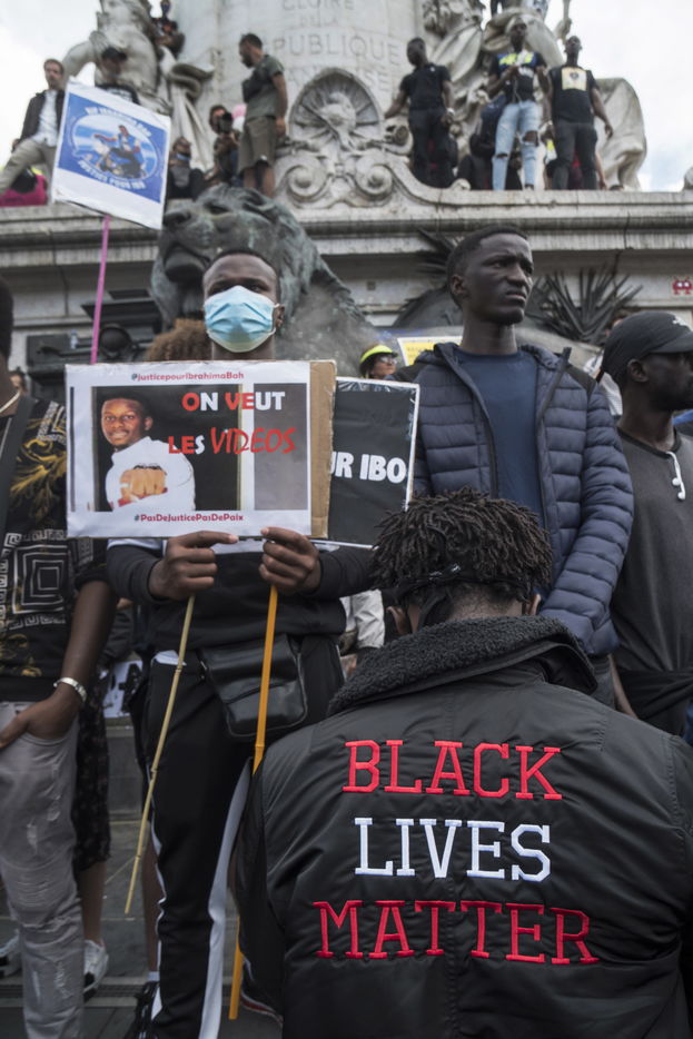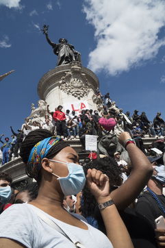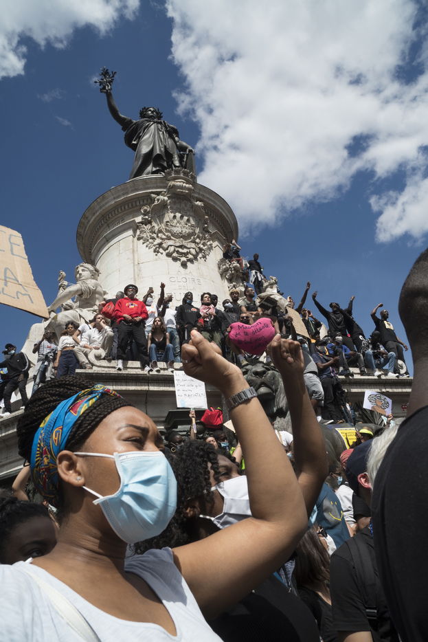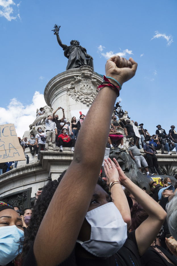 A Paris, manifestation massive en mémoire d'Adama Traoré et George Floyd. Black Saturday à Place de la Republique, Paris. Alors que les Etats-Unis se déchirent la meme semaine d'enterrement de George Floyd. Au moins 20 000 personnes ont bravé l'interdiction de manifester et répondu à l'appel du collectif «Vérité pour Adama Traoré».