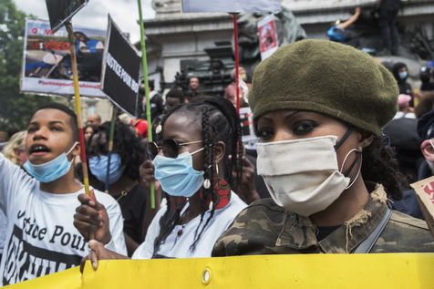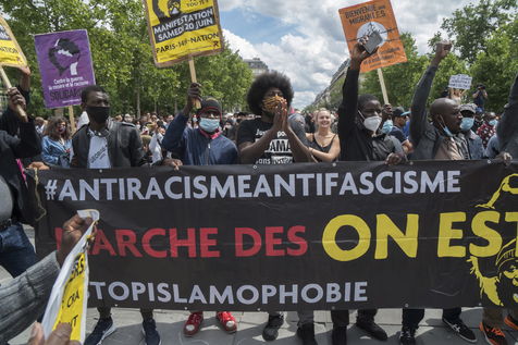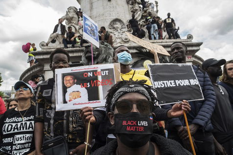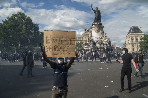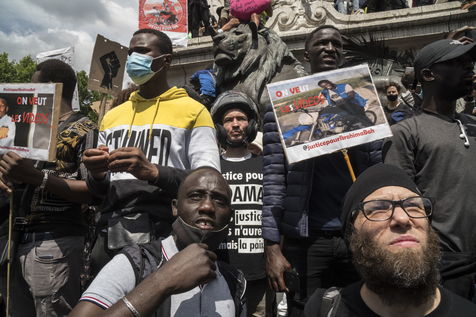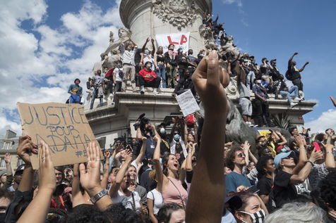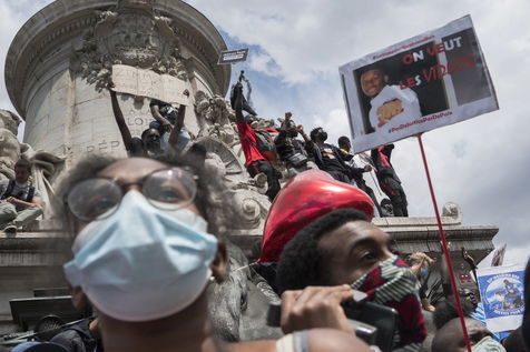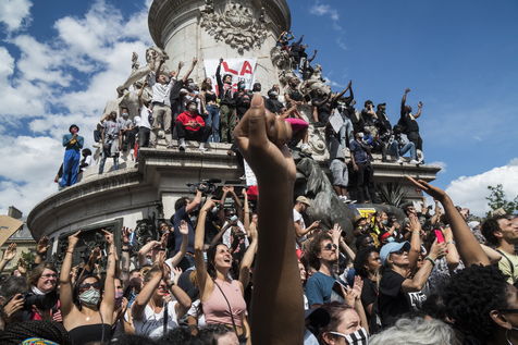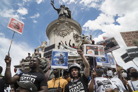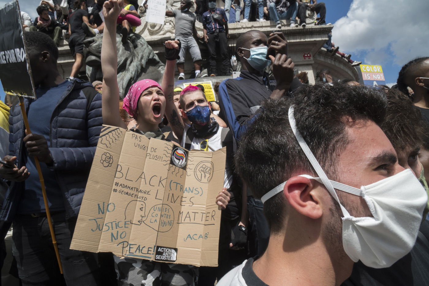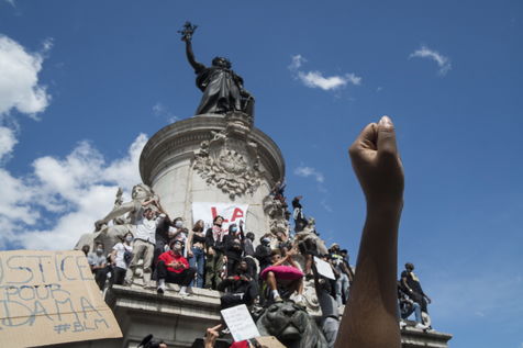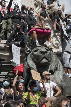 A Paris, manifestation massive en mémoire d'Adama Traoré et George Floyd. Black Saturday à Place de la Republique, Paris. Alors que les Etats-Unis se déchirent la meme semaine d'enterrement de George Floyd. Au moins 20 000 personnes ont bravé l'interdiction de manifester et répondu à l'appel du collectif «Vérité pour Adama Traoré».